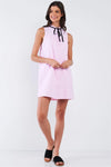 Baby Pink Button Down Sleeveless Ribbon Tie Lettuce Hem Round Neck Loose Fit Babydoll Mini Dress /1-2-2-1
