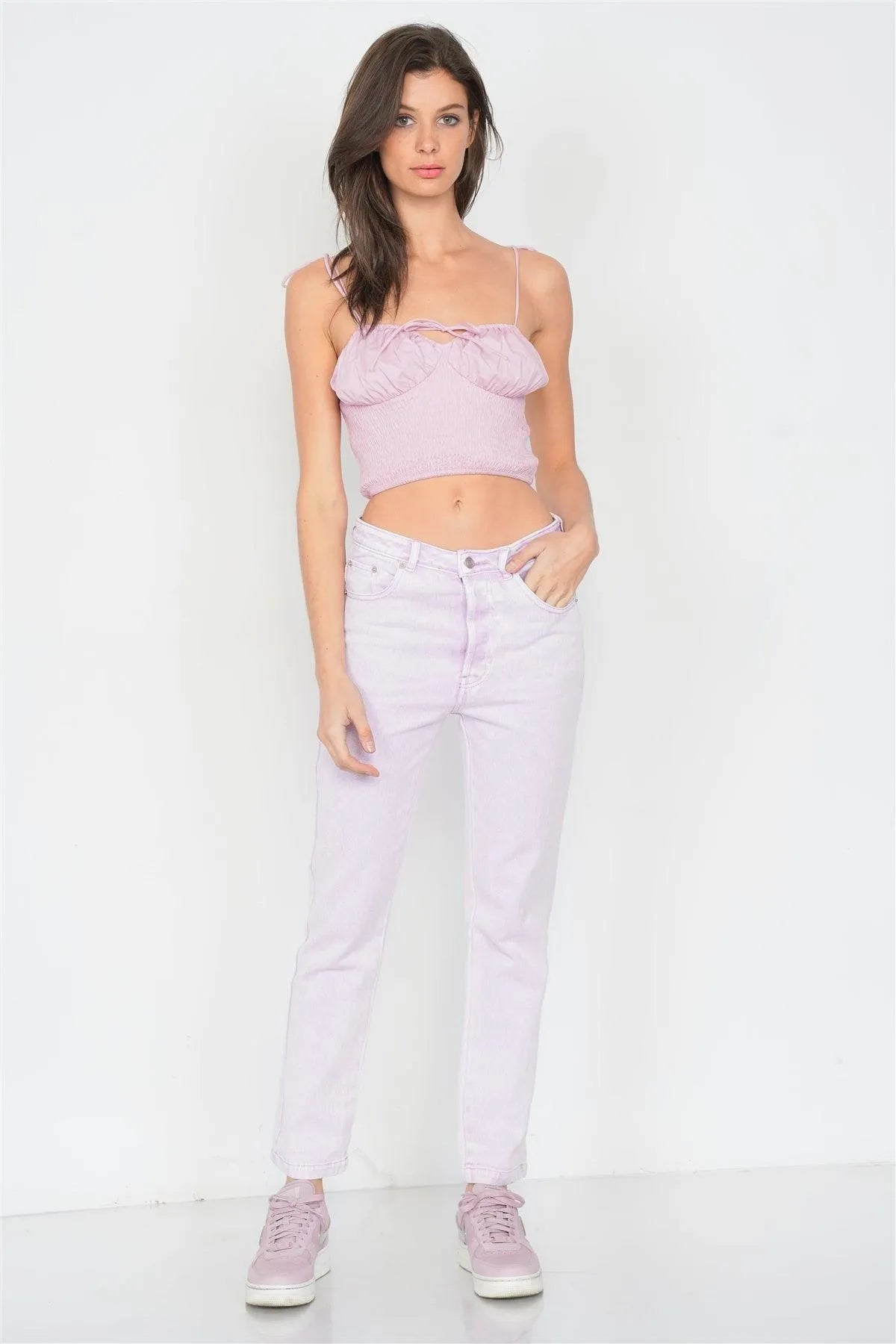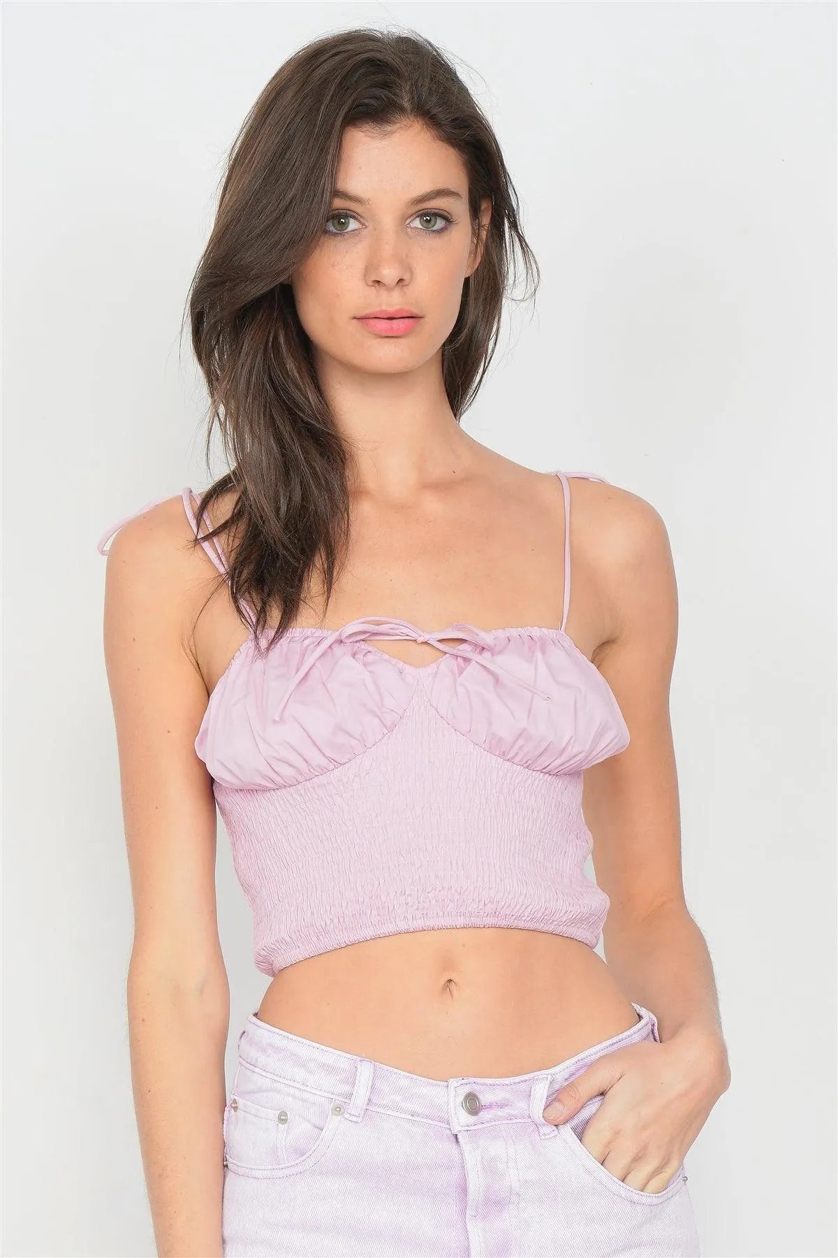 Top Features: elasticized crop top, ruched detail, bustier bust, self-tie neck line on front, adjustable tie straps, stretchy, solid, unlined, casual, boho, summer styleItem Measurements: Length: 10", Bust: 14"Model is 5'9 wearing a size Small ( Waist: 23.5", Bust: 32B, Hips: 36")Item comes pre-packed True to SizeAlso available in Black, Off-White, Sky and Yellow