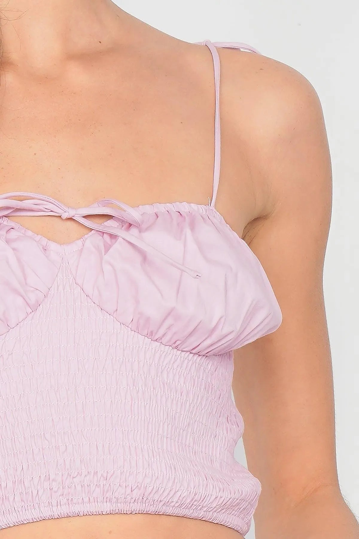 Top Features: elasticized crop top, ruched detail, bustier bust, self-tie neck line on front, adjustable tie straps, stretchy, solid, unlined, casual, boho, summer styleItem Measurements: Length: 10", Bust: 14"Model is 5'9 wearing a size Small ( Waist: 23.5", Bust: 32B, Hips: 36")Item comes pre-packed with hang tagsTrue to SizeAlso available in Black, Off-White, Sky and Yellow