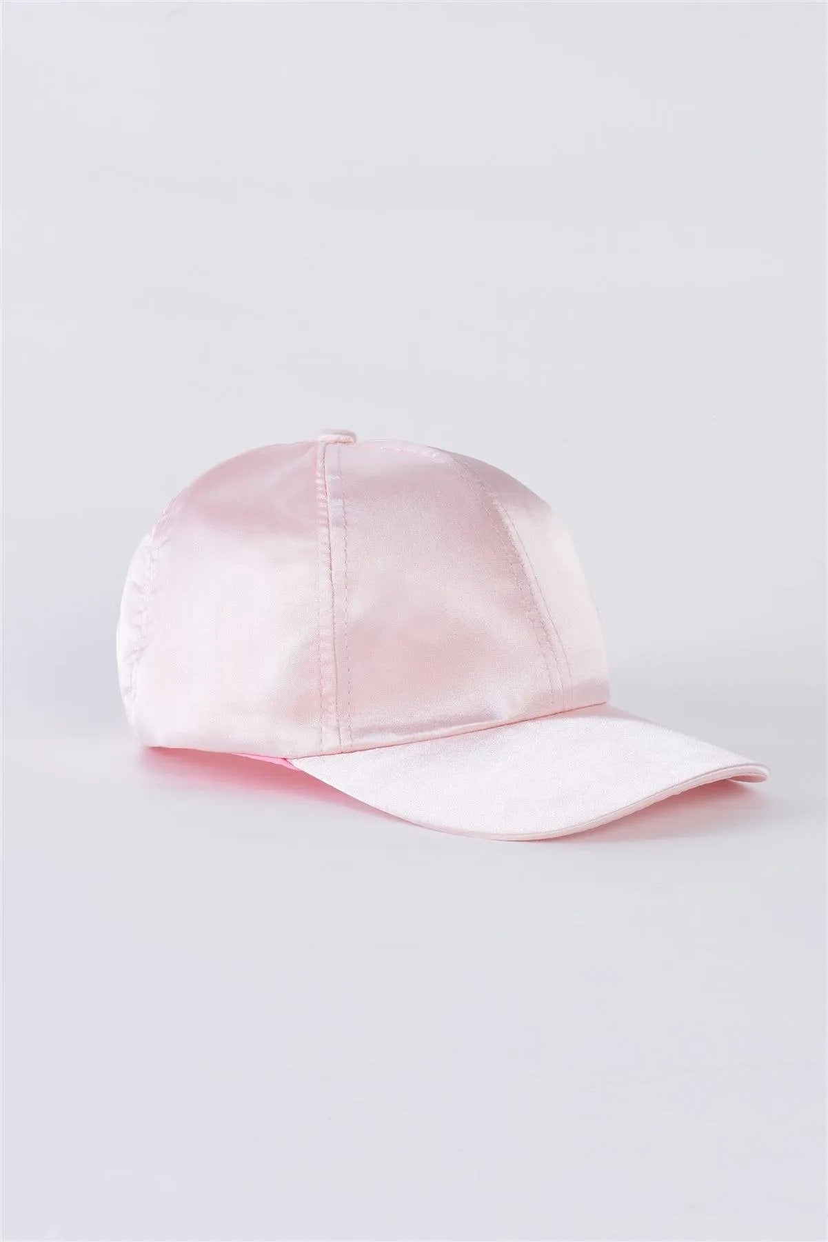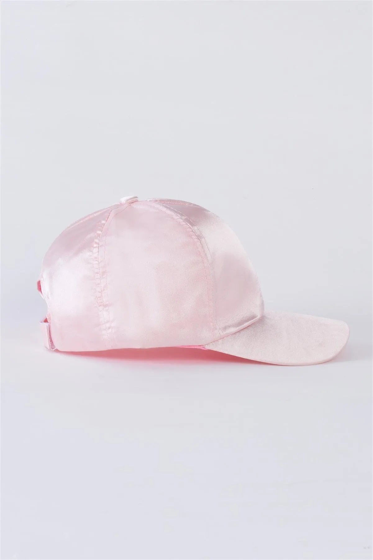 Pink Satin Baseball Cap With Adjustable Velcro Strap /6 Hats