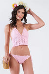 Pink Self-Tie Halter Neck Crochet Two Piece Swimsuit
