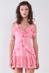 Pink Sleeveless V-Neck Ruffle Mini Dress
