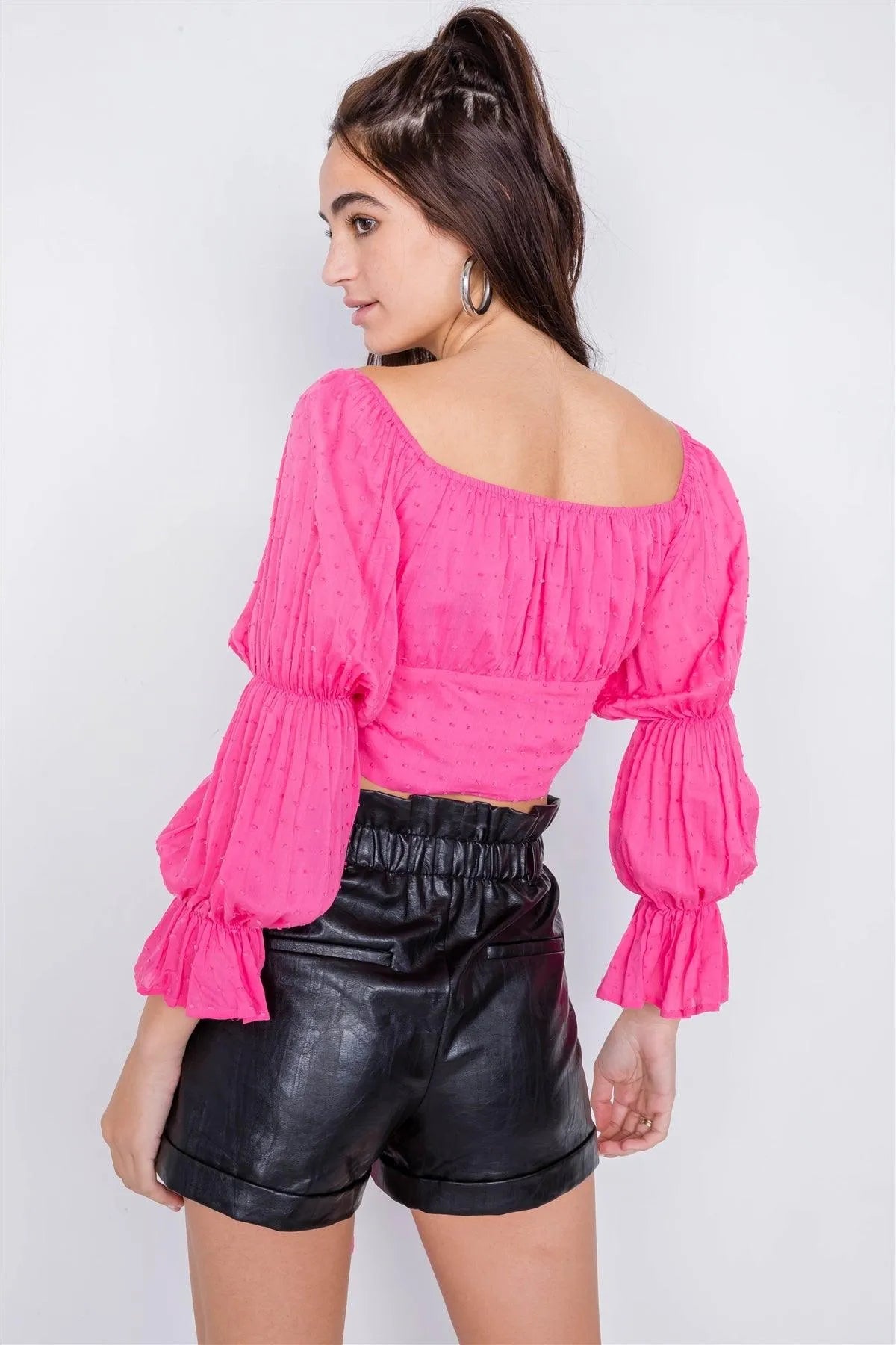 Smocked Long Sleeve Sheer Crop Top Trendy Boutique Fashion TopVendor:HYFVE