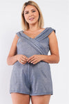 Junior Plus Glimmering Ice Blue Sleeveless Bateau Neck Pleated Wrap Detail Fitted Romper /1-1-1