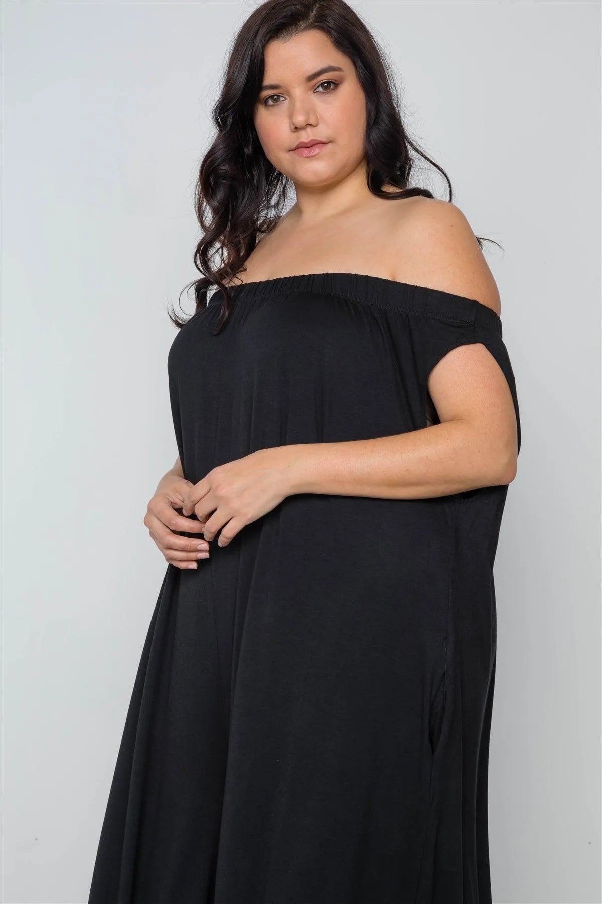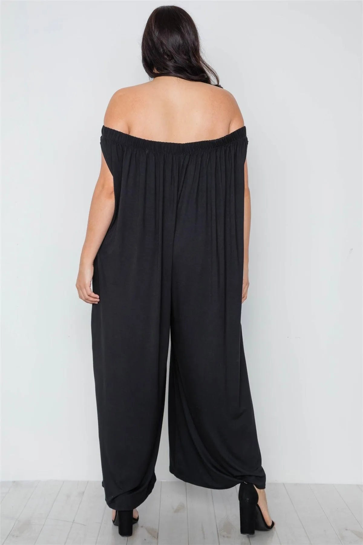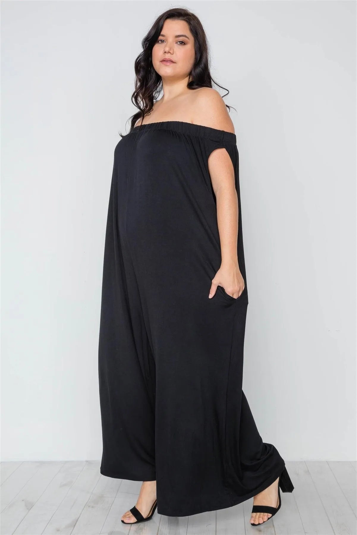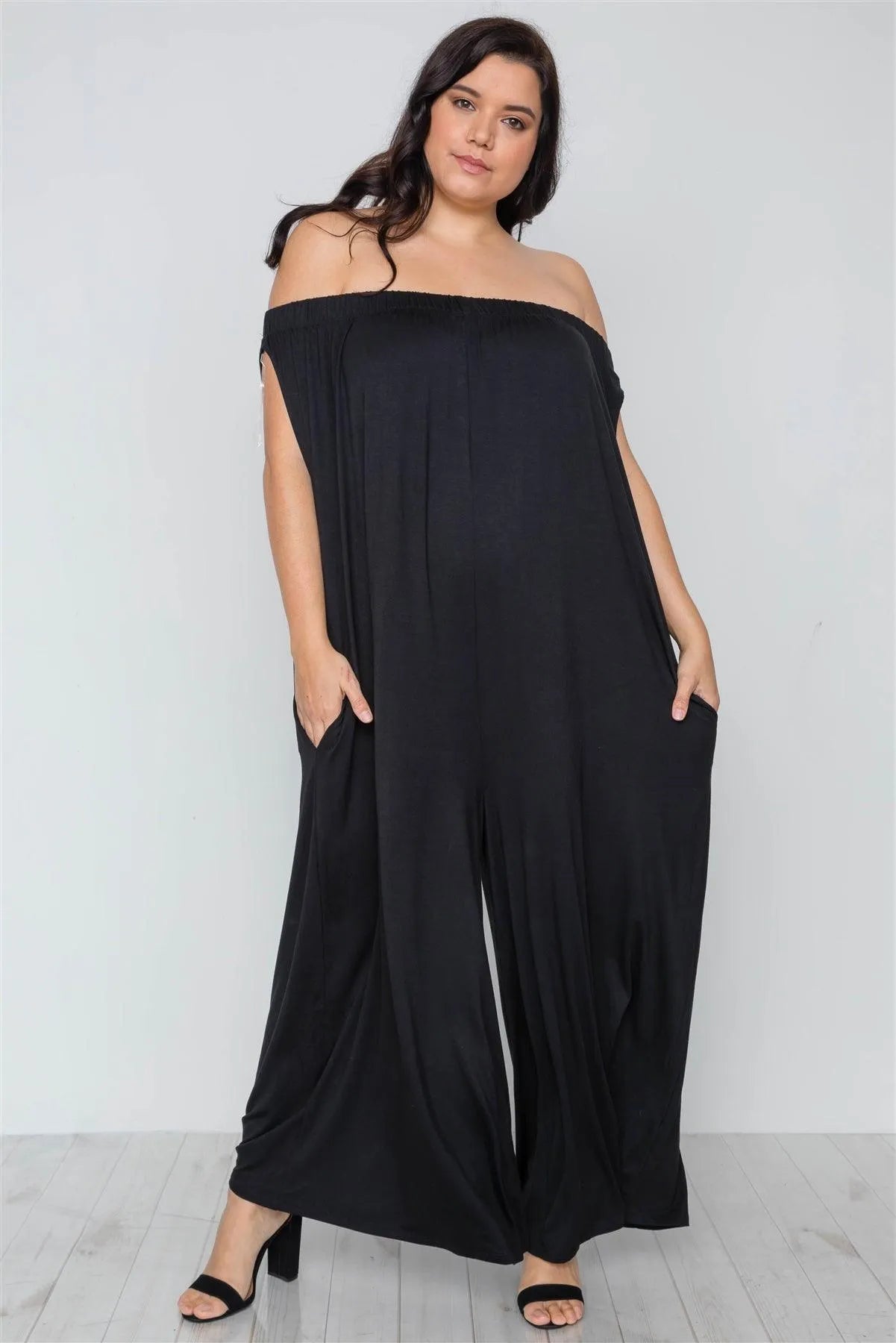 Plus Size Black Basic Off-The-Shoulder Jumpsuit