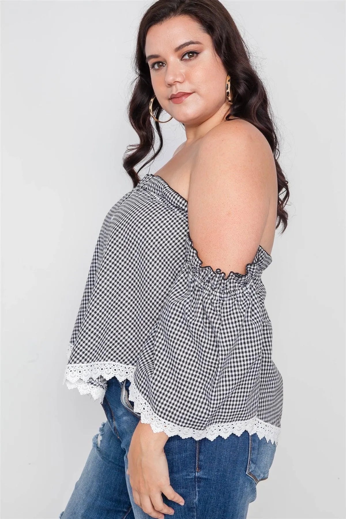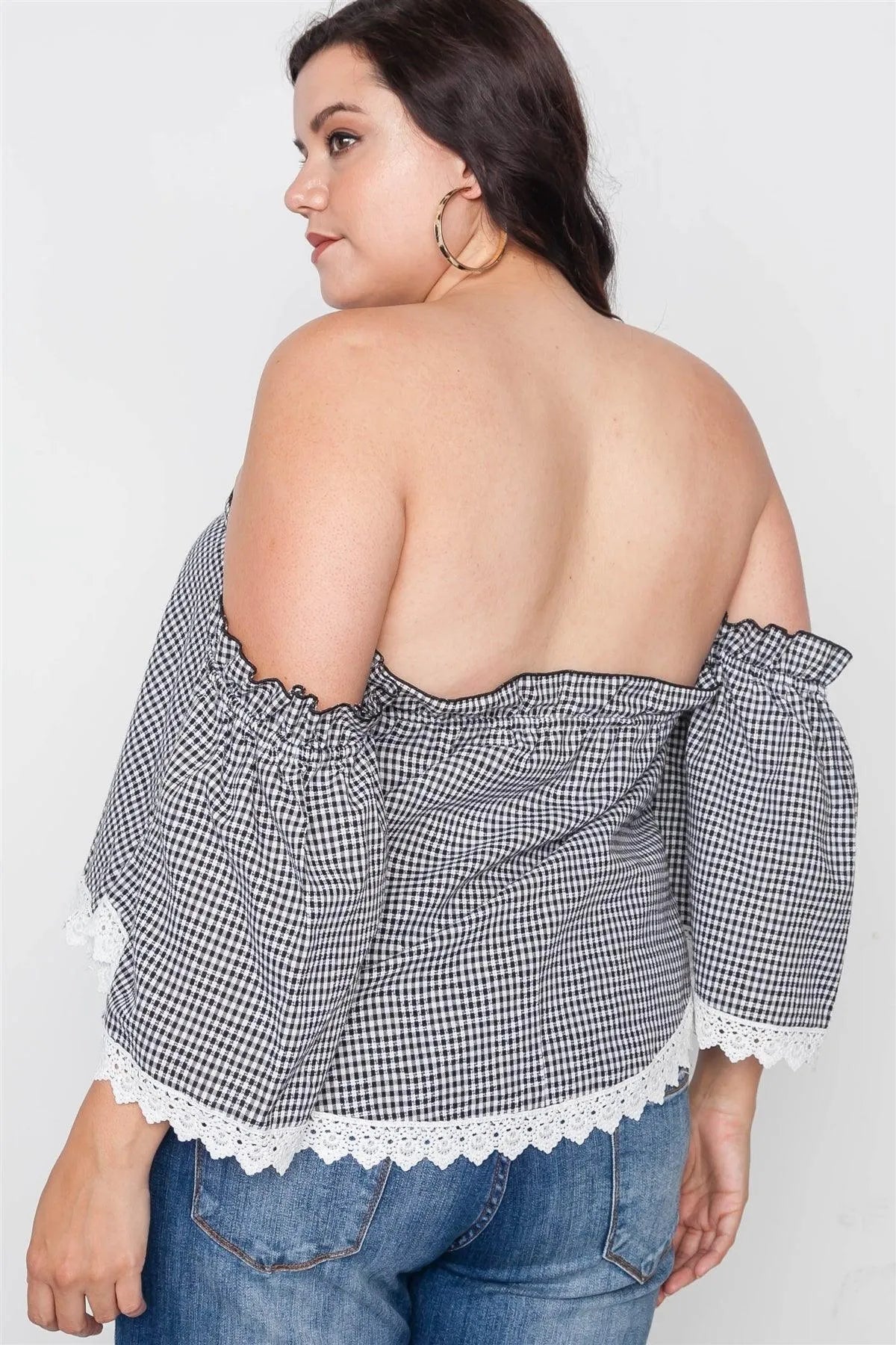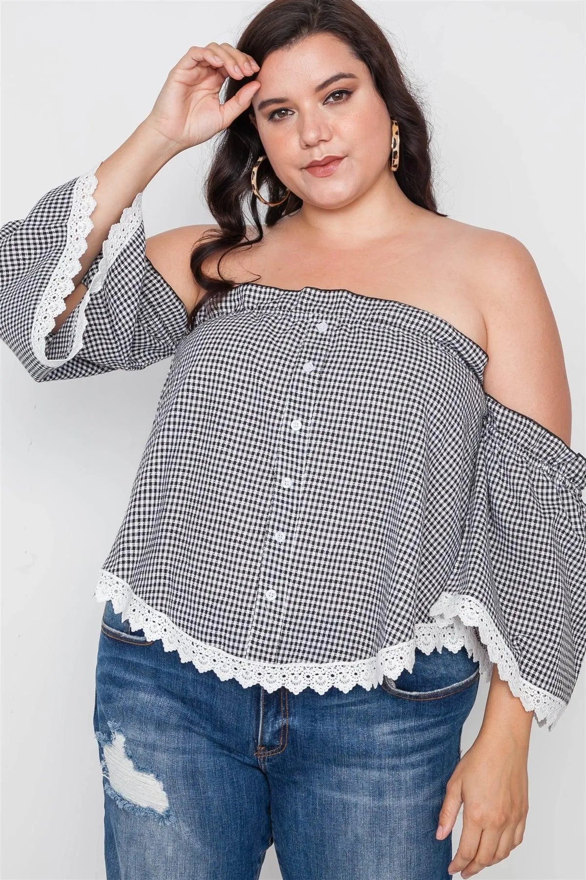 Plus Size Black Gingham Off-The-Shoulder Top /3-2-2
