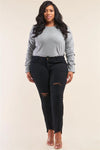 Plus Size Solid Black Low-Mid Rise Tight Fit Ripped Denim Jeans
