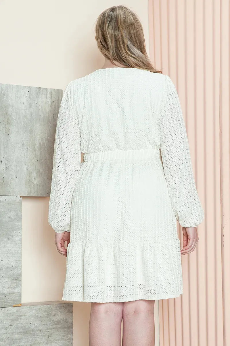 Plus Size Eyelet Lace Long Sleeve Notch Neck Empire Waist Tiered Dress