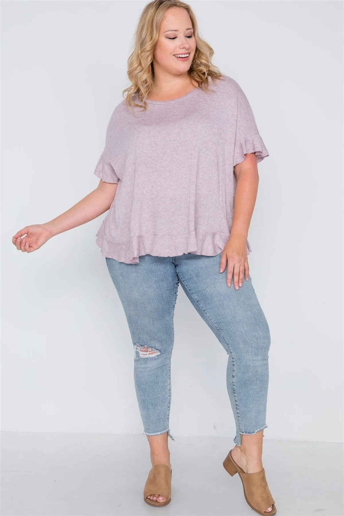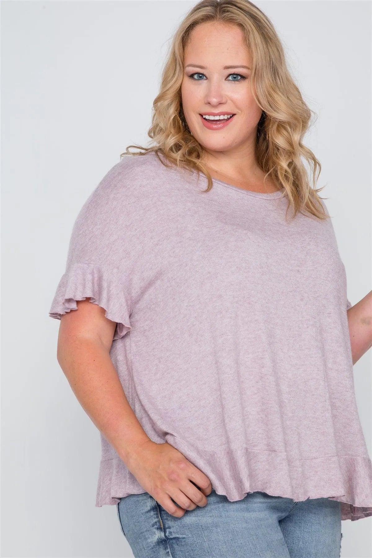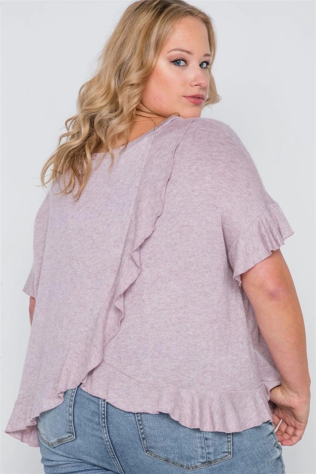 Plus Size Lavender Surplice Back Ruffle Knit Top /3-3