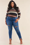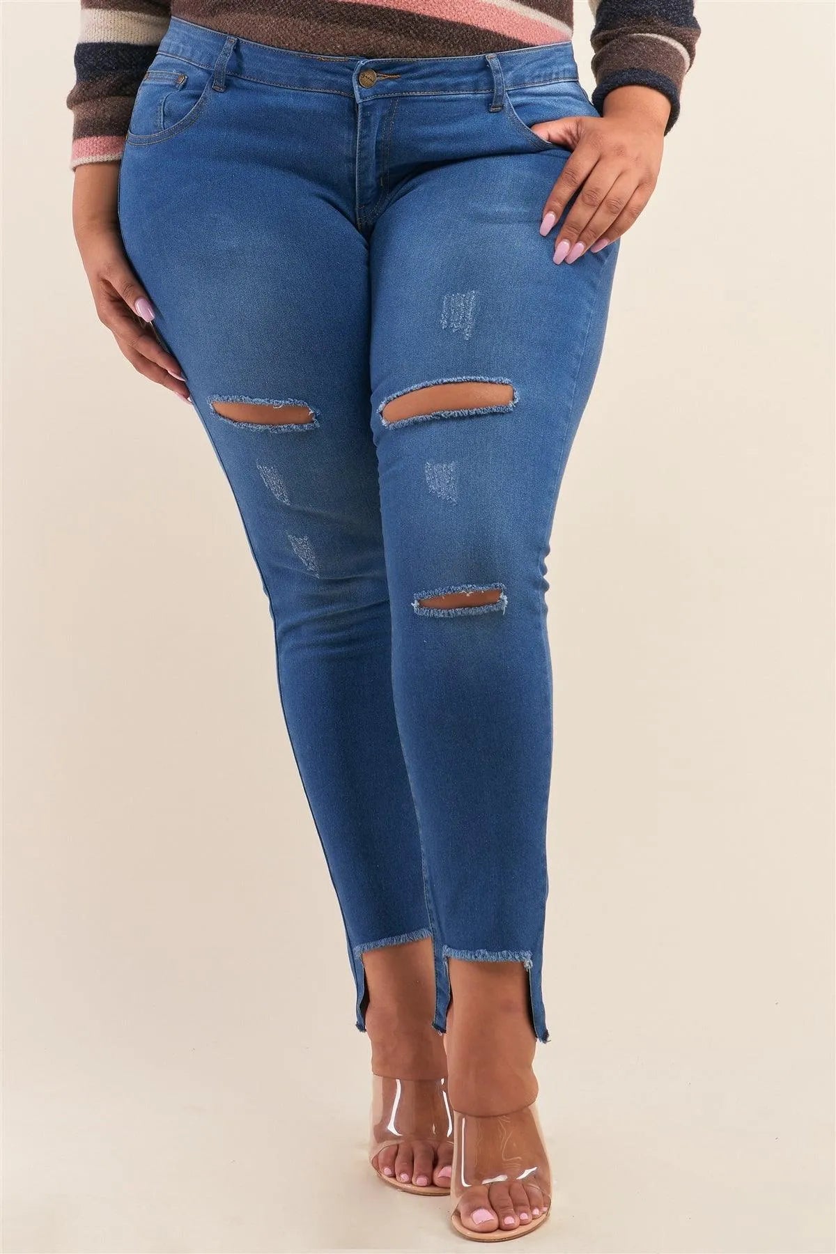 Plus Size Light Blue Low-Rise Ripped Denim Pants /1-2-3-3-2-1