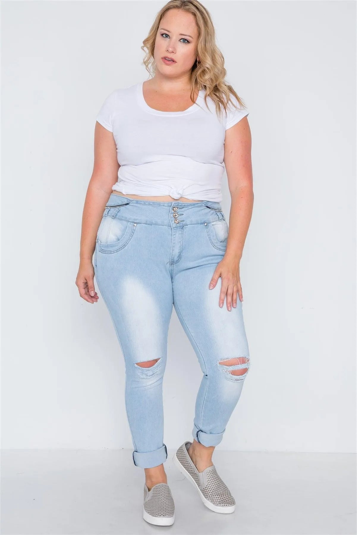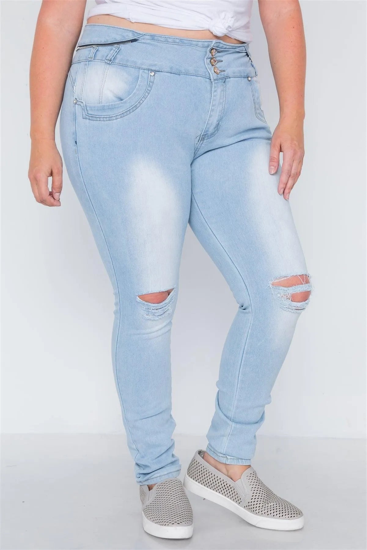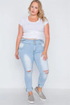 Plus Size Light Denim Distresses Skinny Jeans /2-2-2-2-2