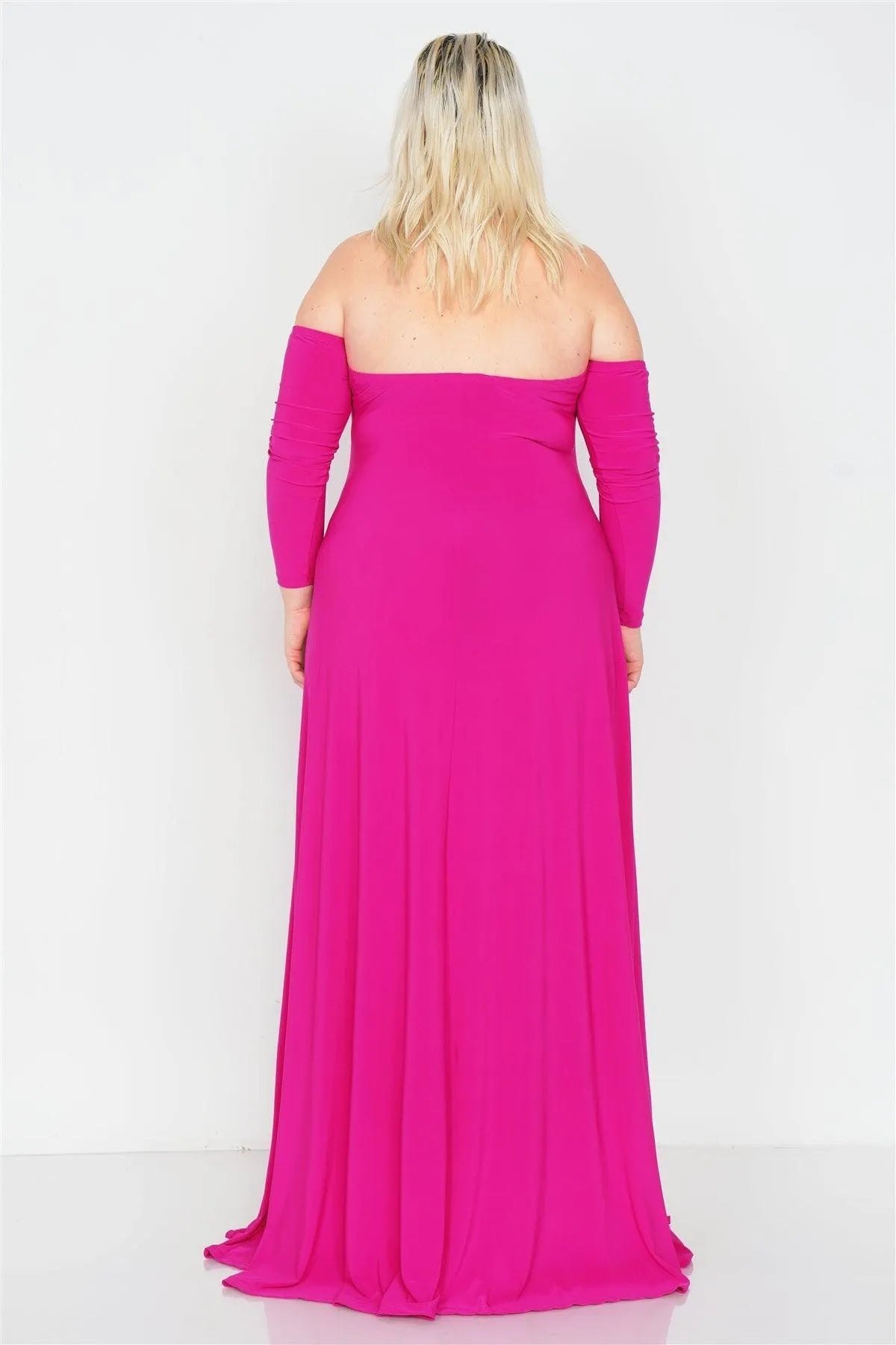 Plus Size Magenta Off-The-Shoulder Elegant Double Slit Maxi Dress