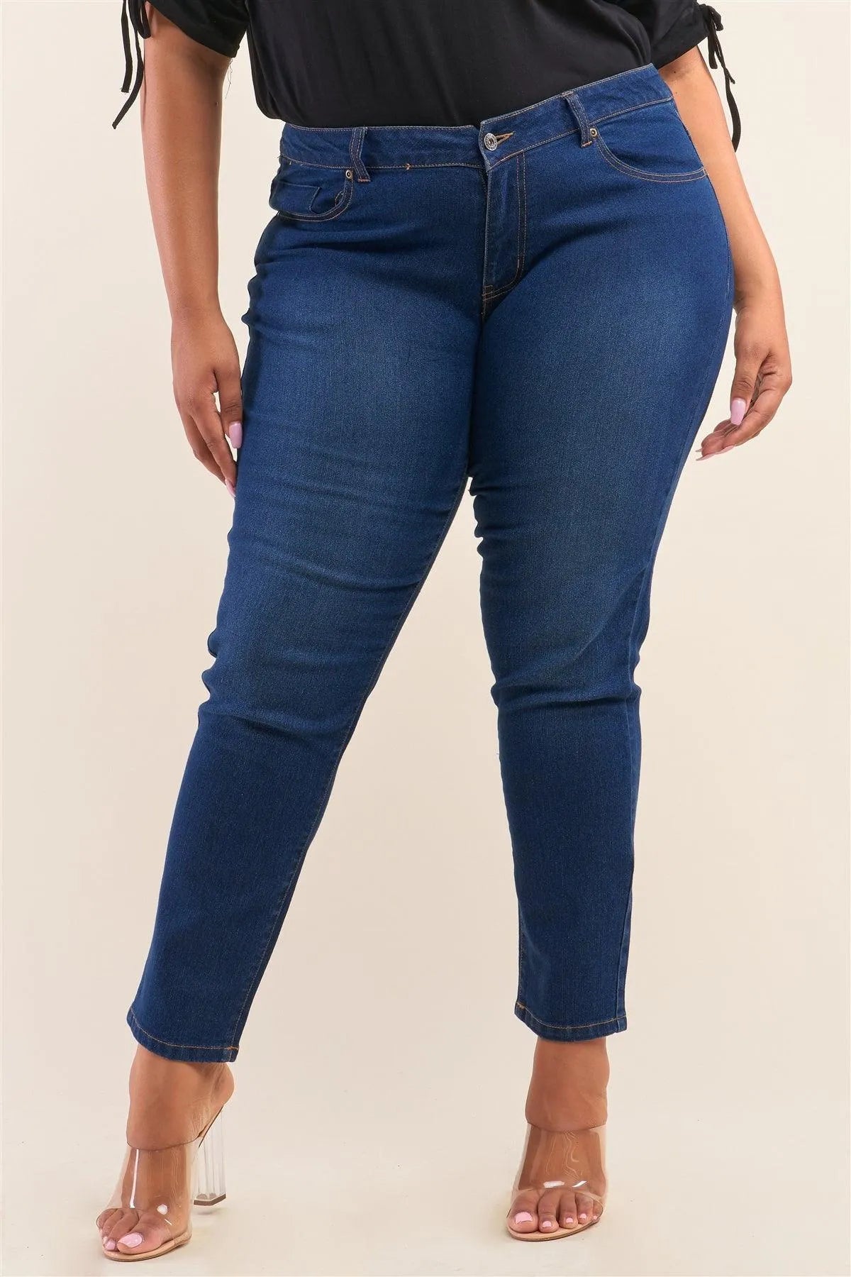 Plus Size Medium Blue Low-Mid Rise Straight Cut Denim Pants /1-2-3-3-2-1