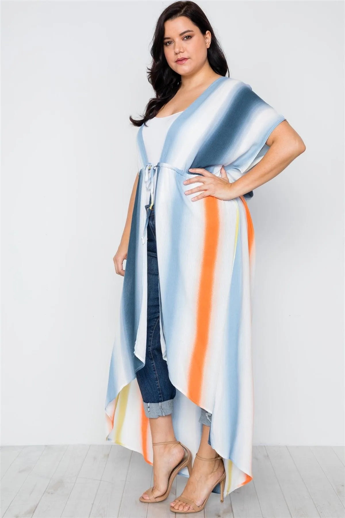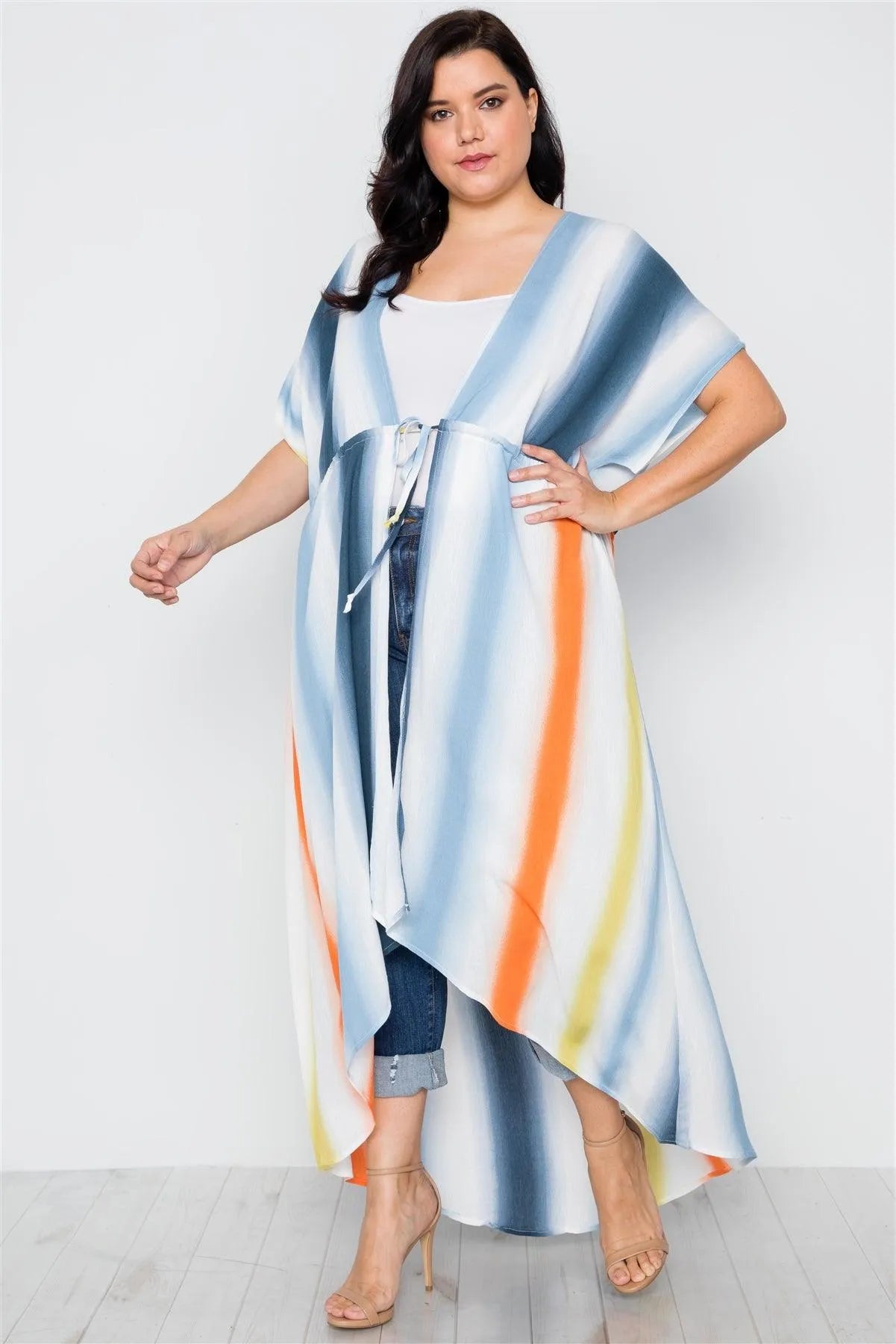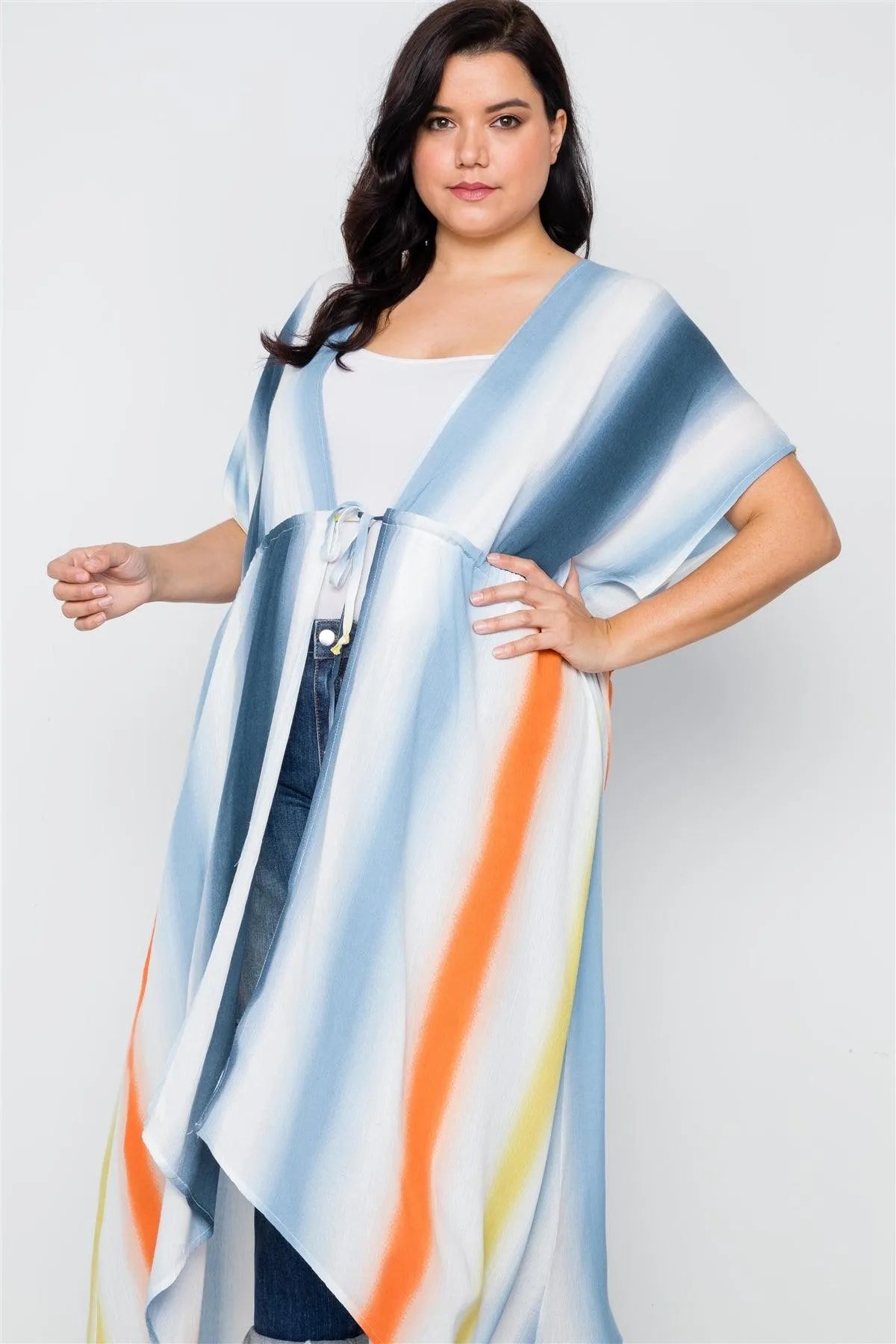 Plus Size Multi Blue Kimono Cover Up /2-2-2