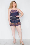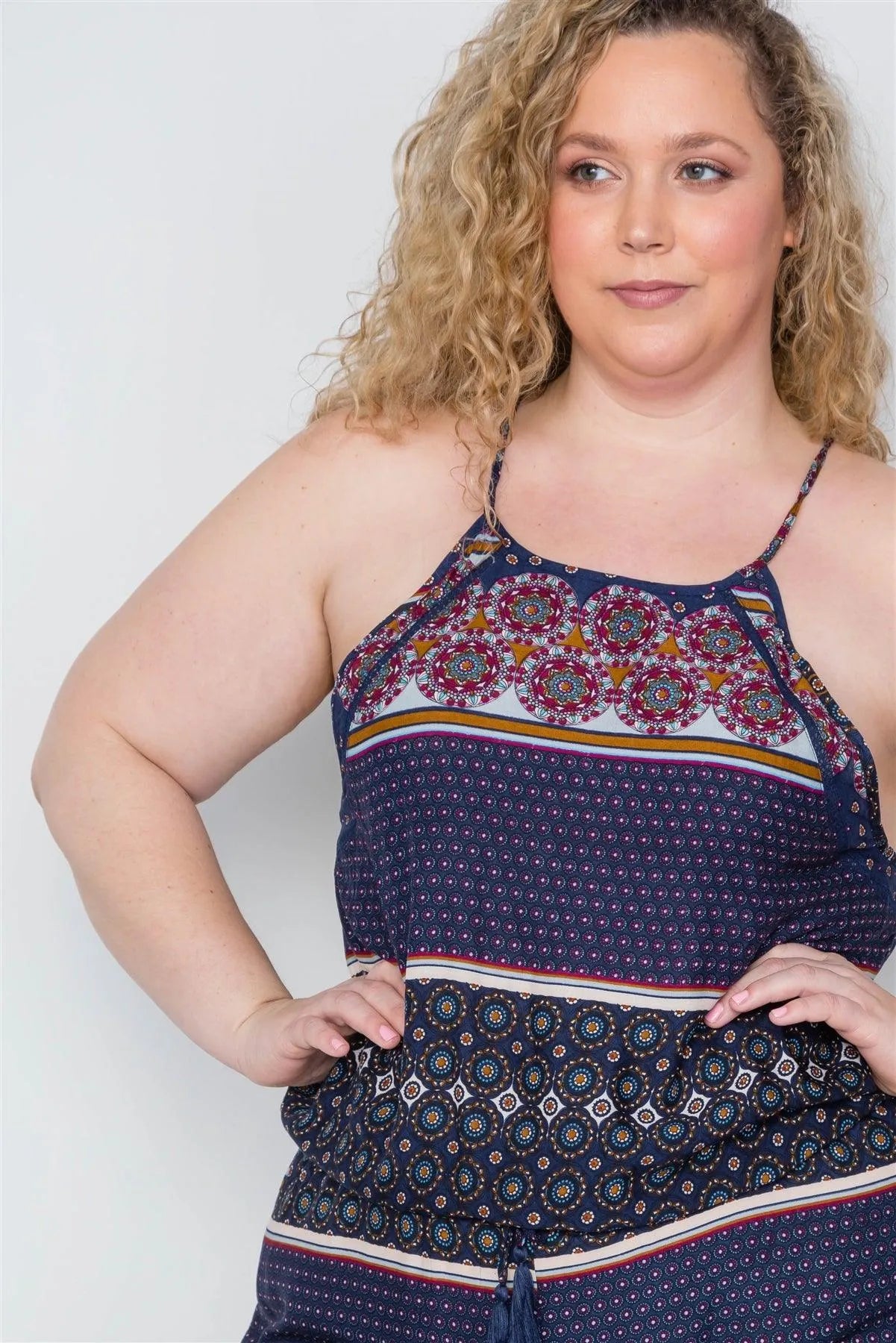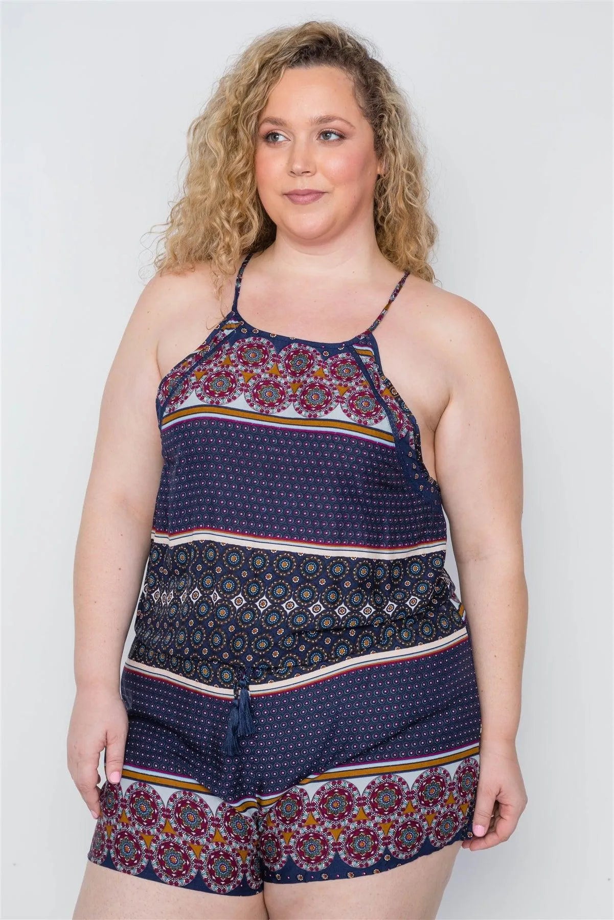 Plus Size Multi Navy Paisley Print Boho Romper / 2-1-1