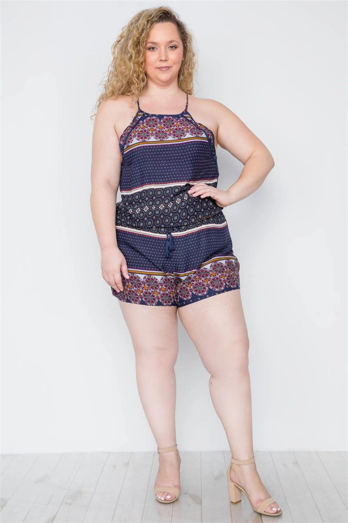 Plus Size Multi Navy Paisley Print Boho Romper / 2-2-2