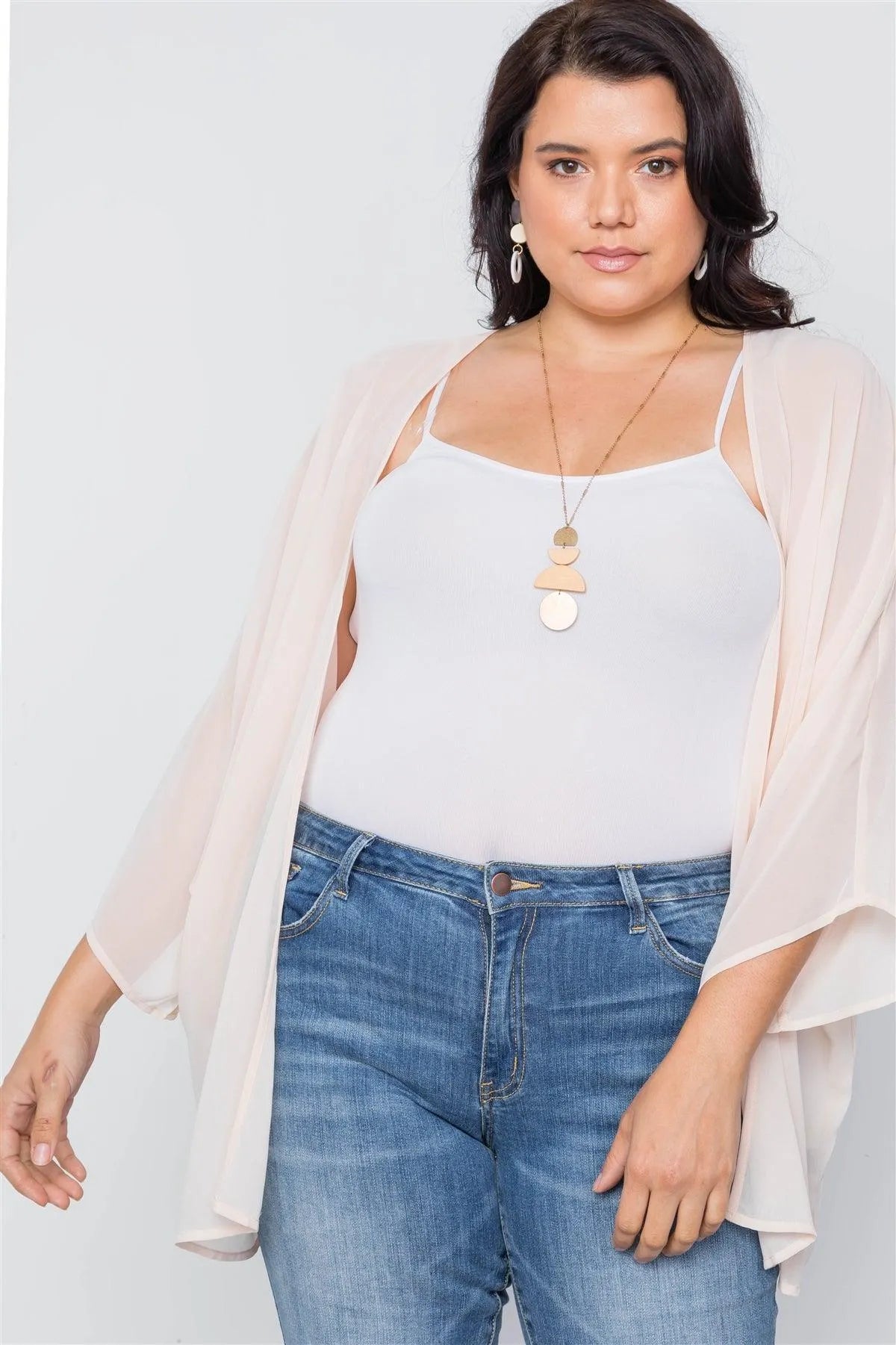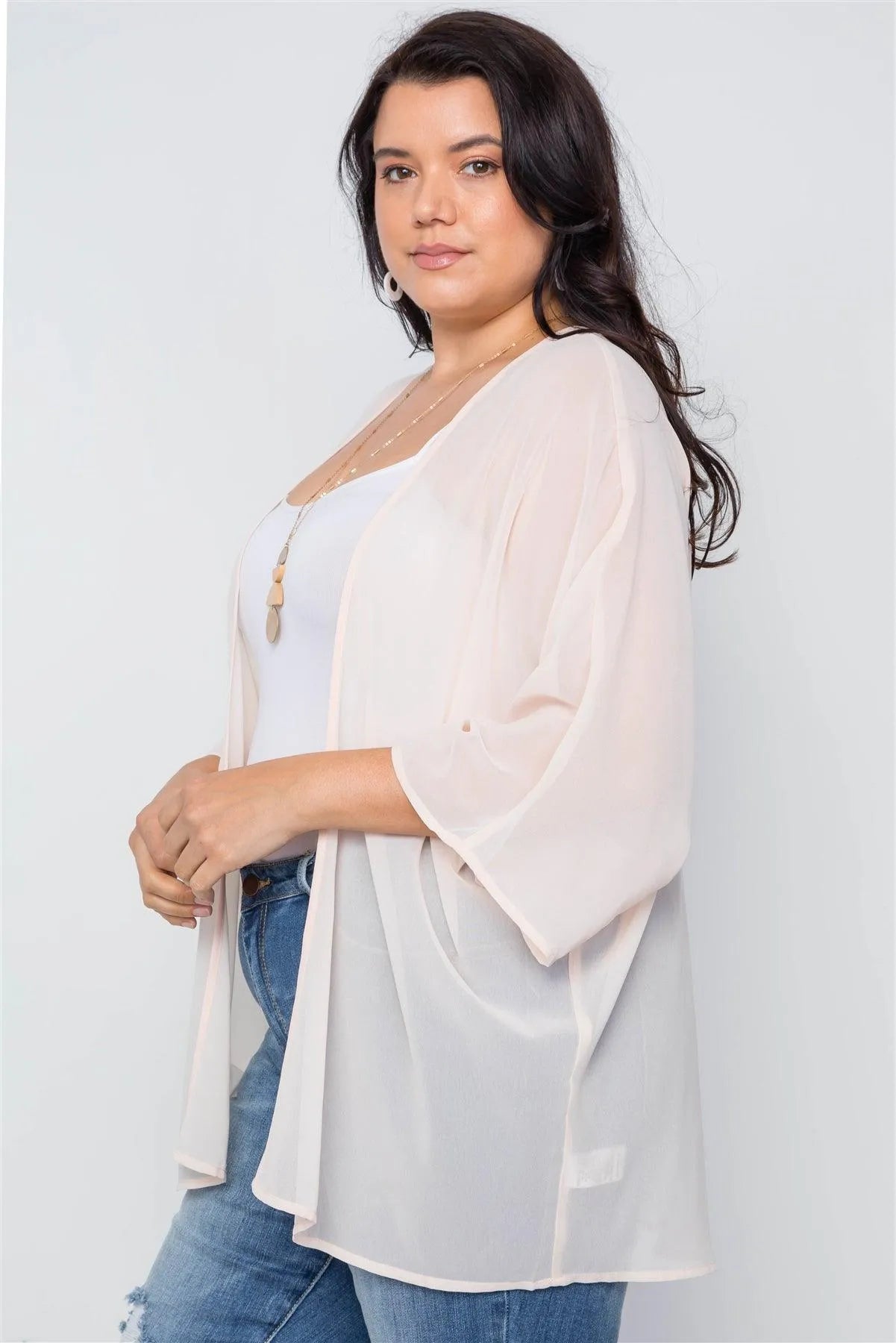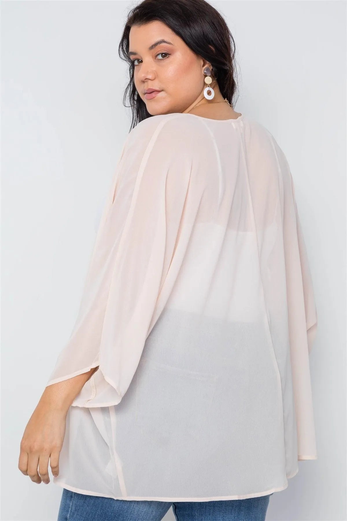 Plus Size Natural Sheer Batwing Sleeves Cover Up /3-3