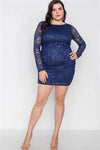 Plus Size Navy Lace Open Back Bodycon Mini Dress