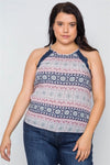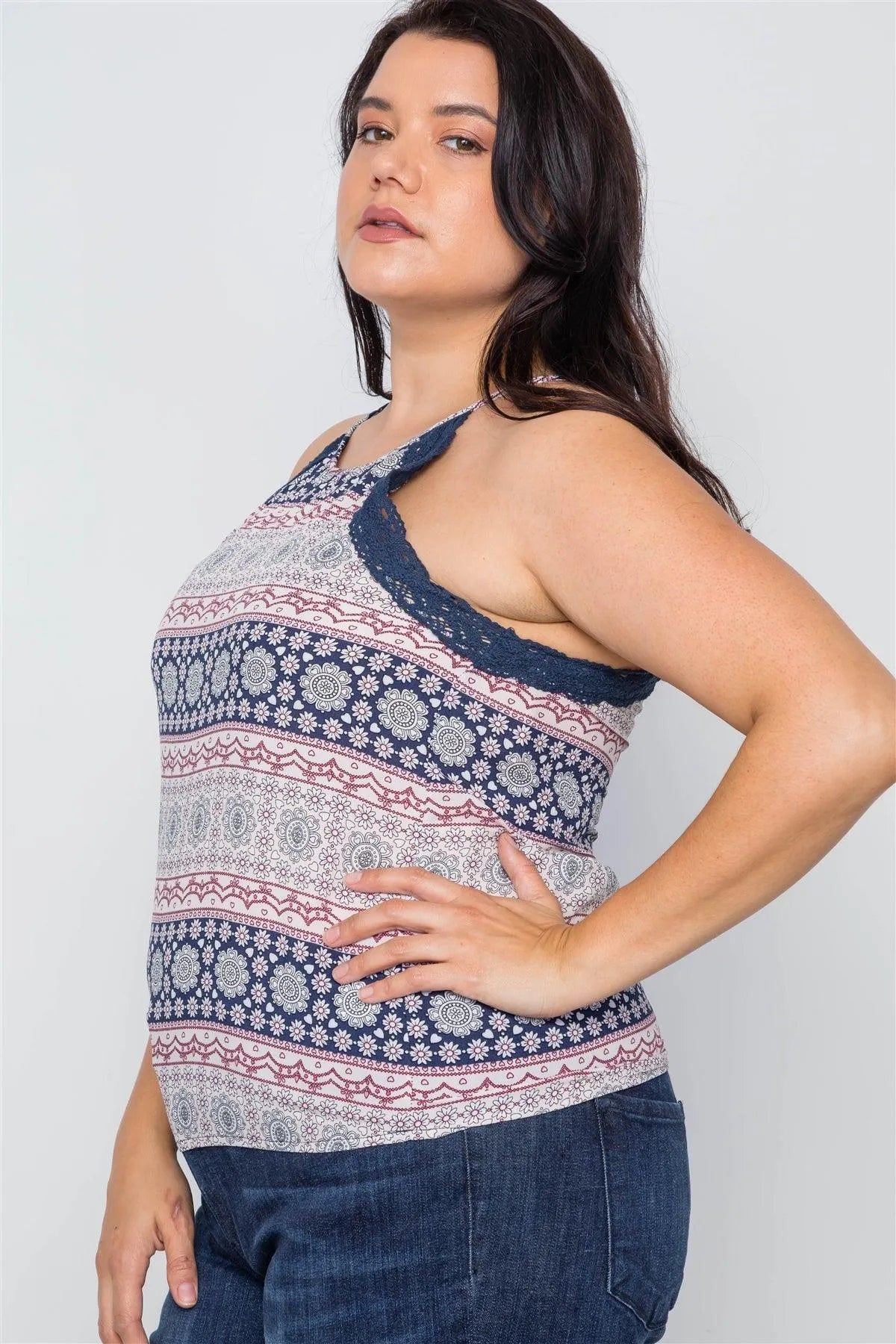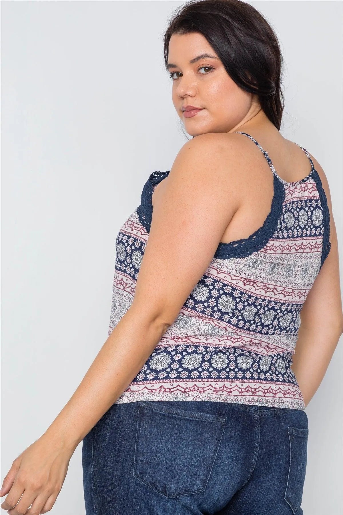 Plus Size Navy Paisley Print Crochet Trim Cami Boho Top / 2-2-2