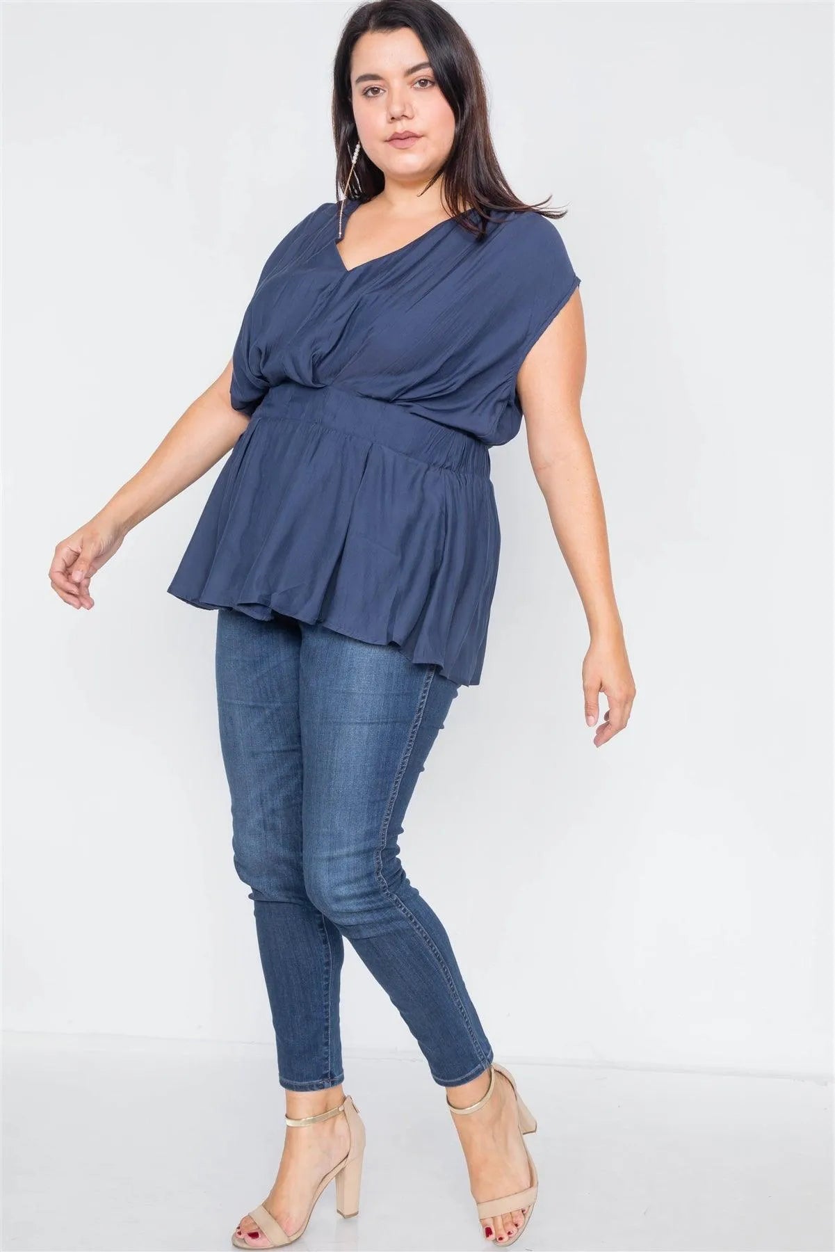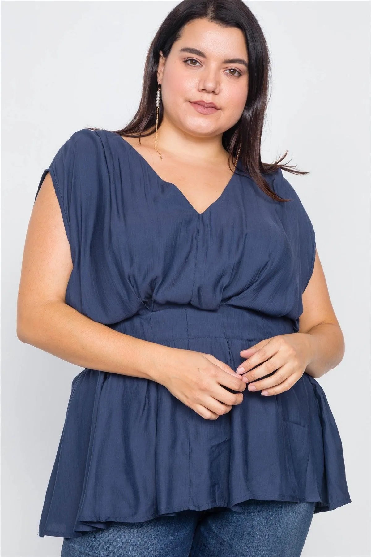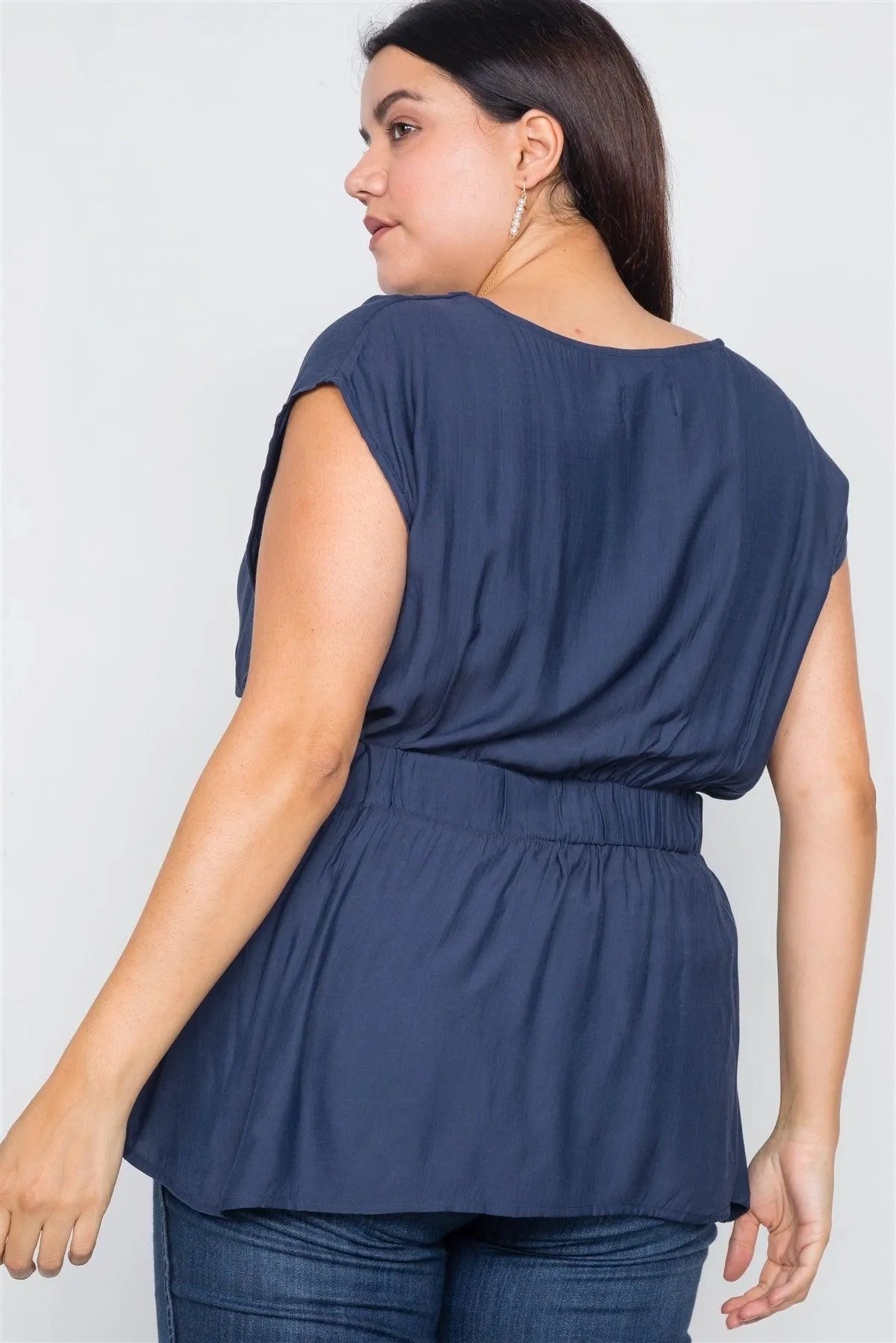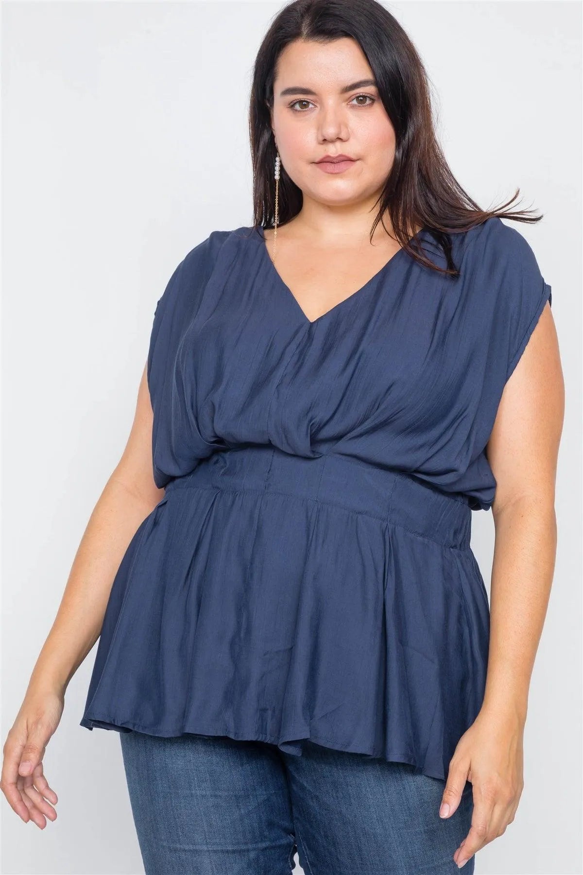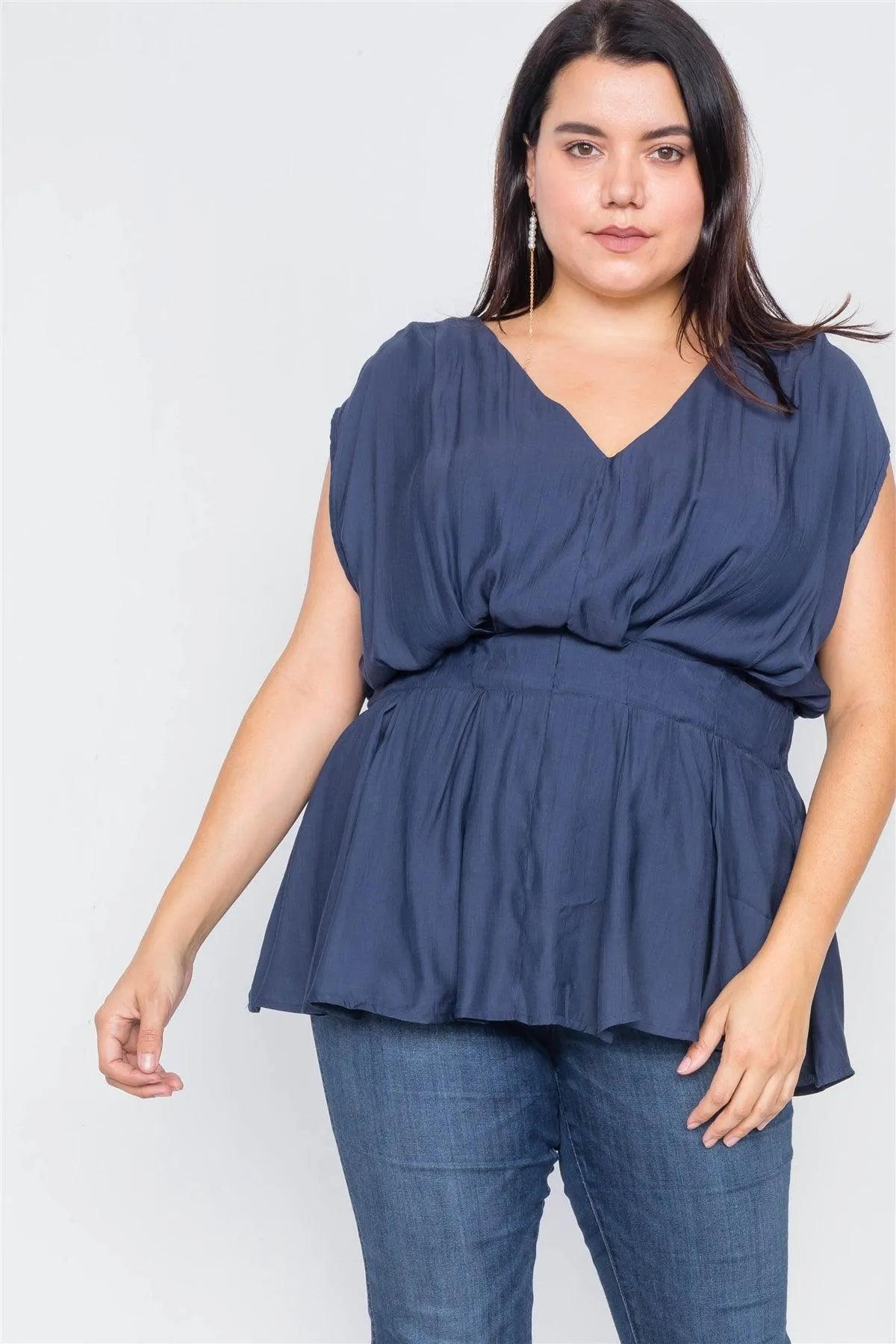 Plus Size Navy V-Neck Sleeveless Mock Peplum Top