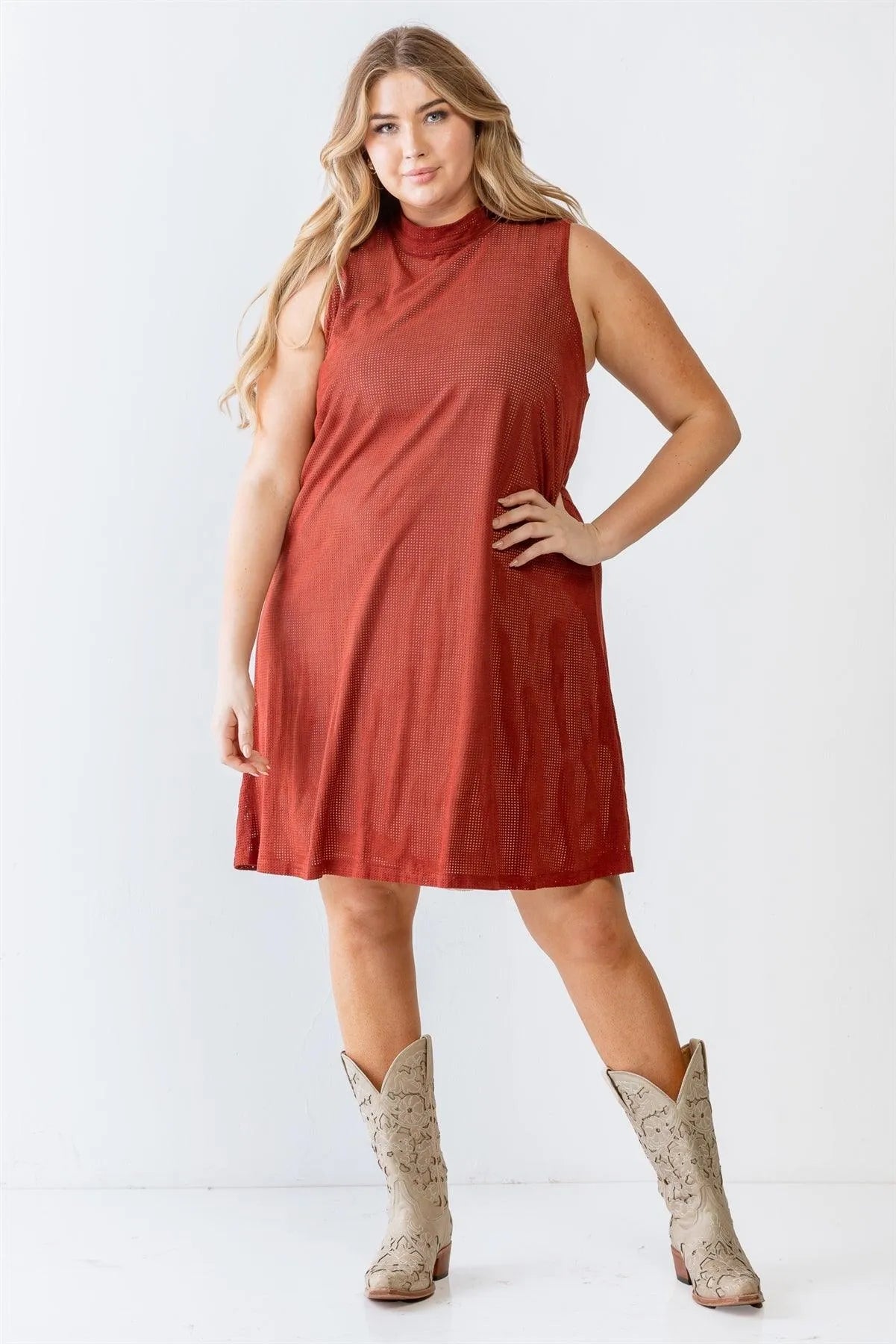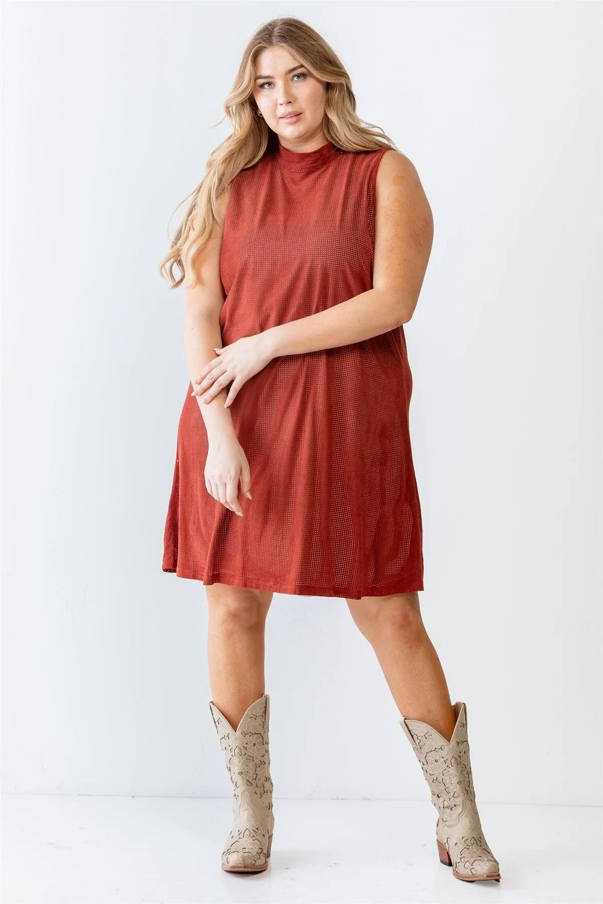 Junior Plus Rust And Nude Illusion High Neck Swing Dress /2-3-1