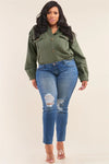 Plus Size Medium Blue Ripped Unstitched Hem Denim Jeans