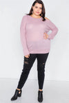Plus Size Mineral Acid Washed Long Sleeve Crew Neck Relaxed Fit TopVendor:New In