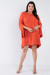 Plus Size Terracota Red Retro Chic Full Slit Sleeve Mini Dress /2-2-2