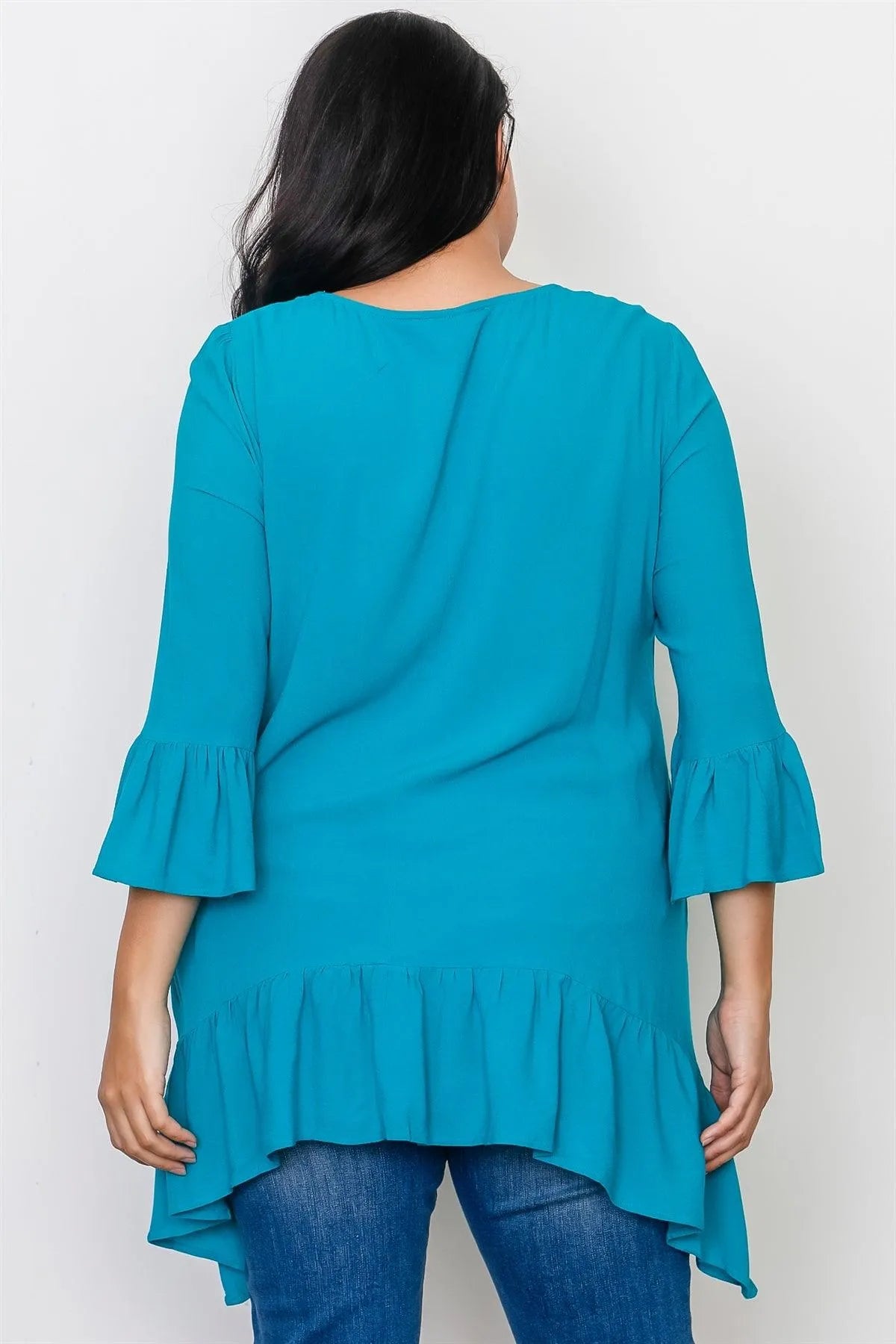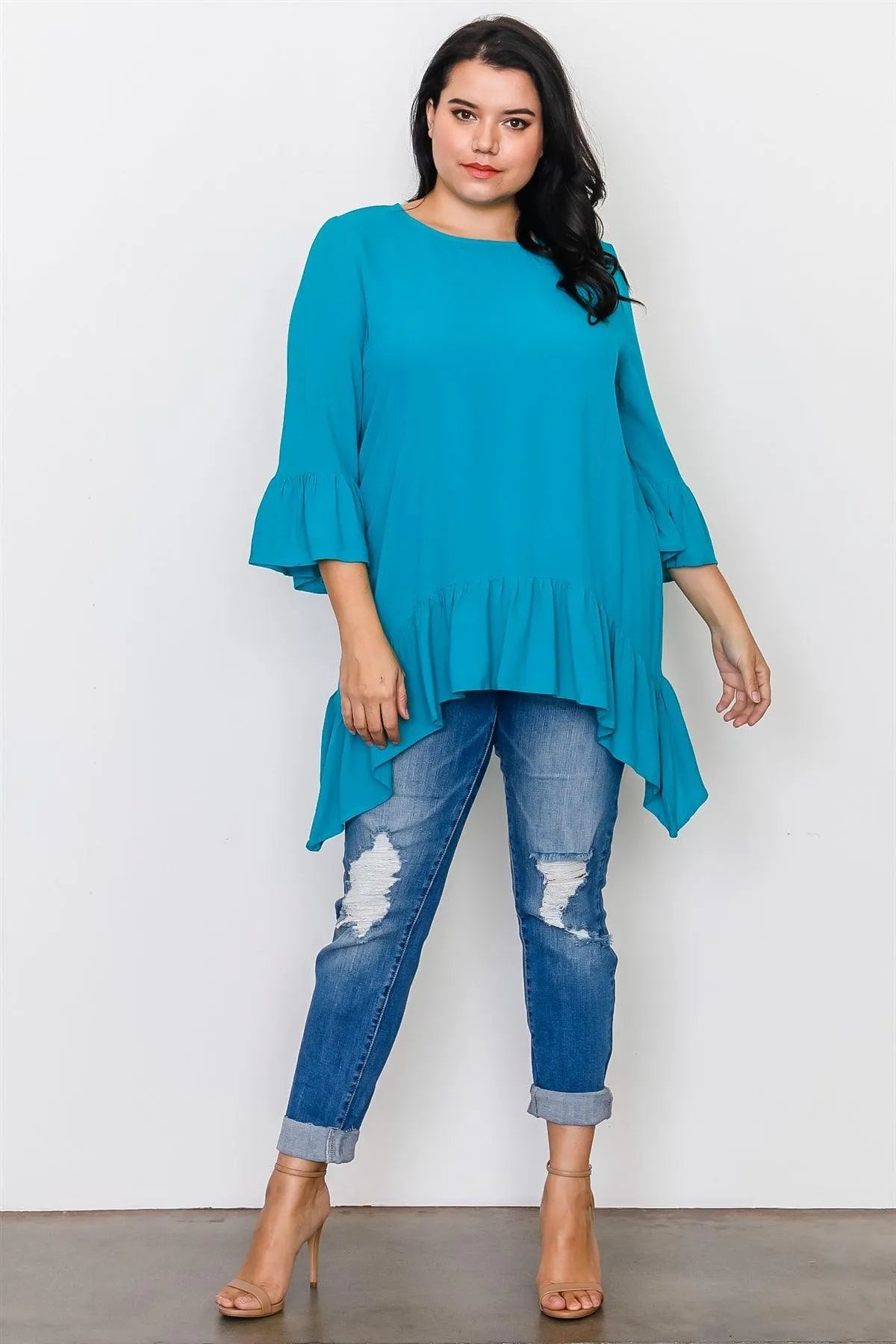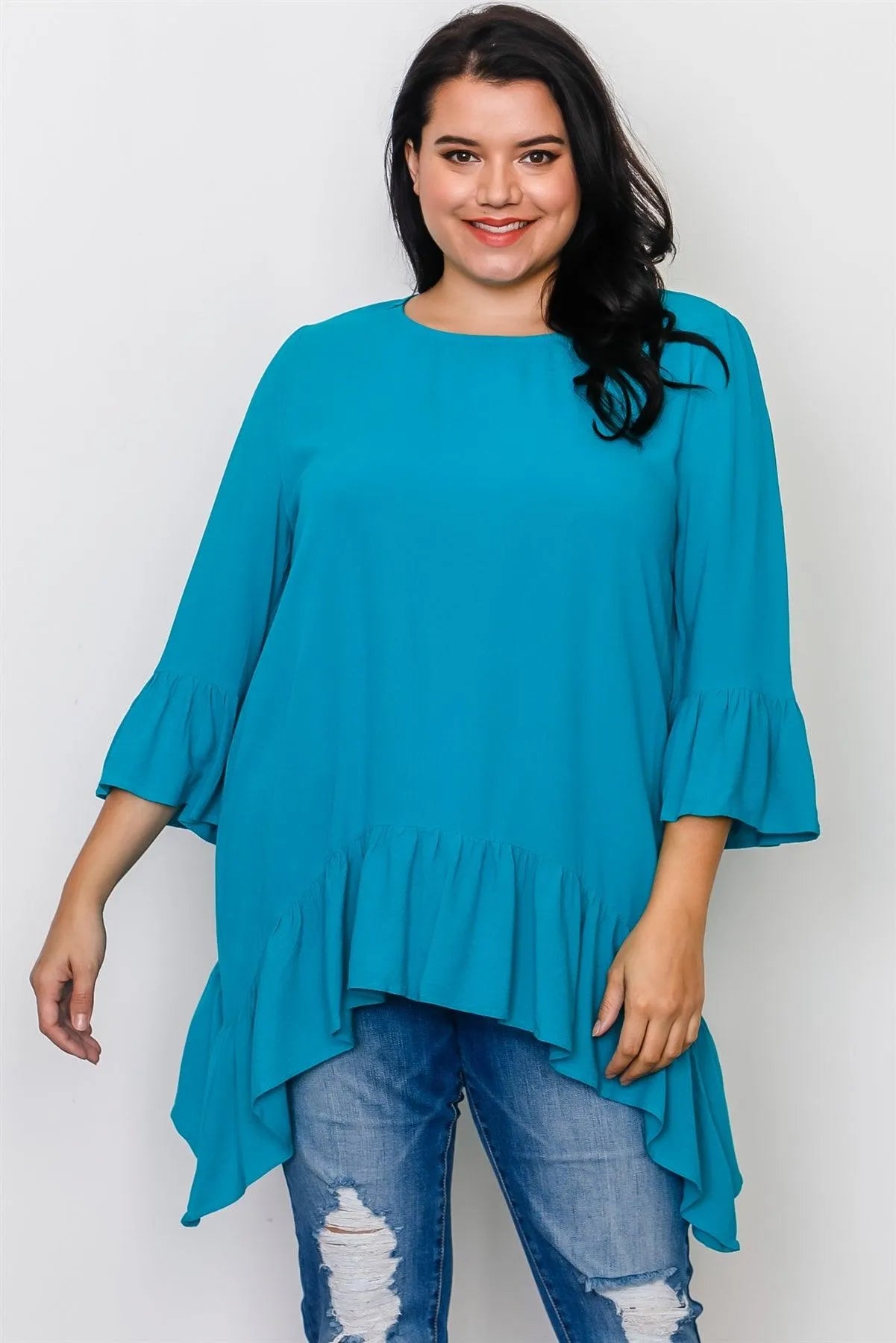 Plus Size Turquoise Ruffle Hem Hi-Low Top /2-2-2
