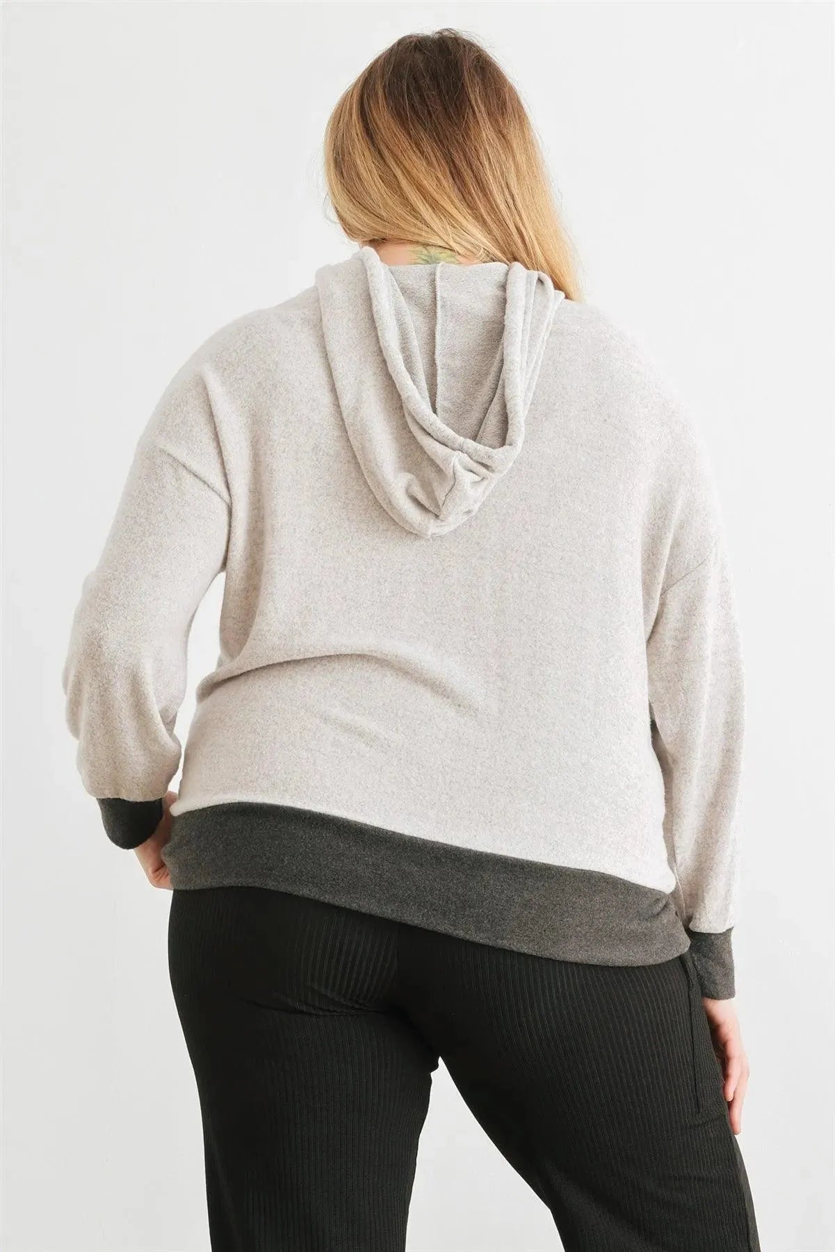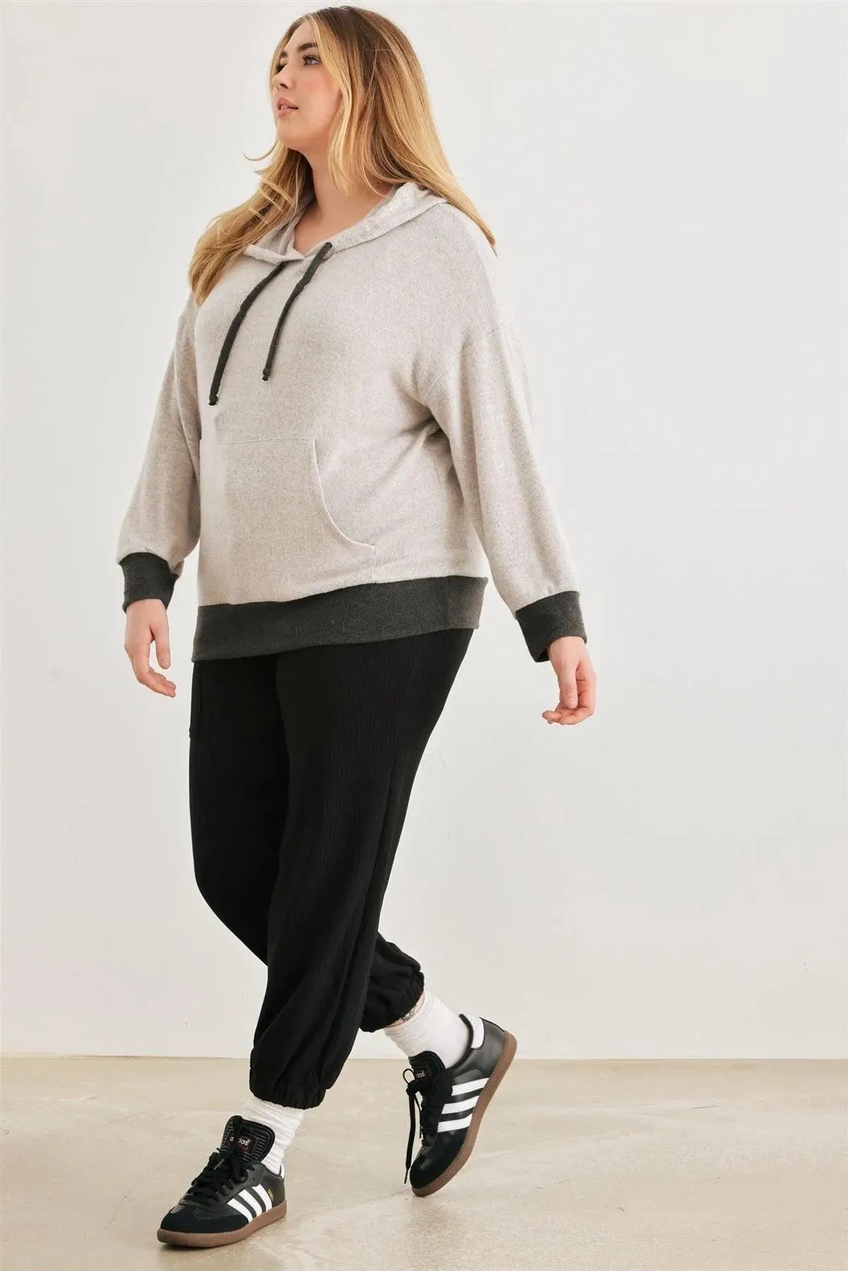 Plus Size Two-Tone Kangaroo Pocket Soft Hoodie