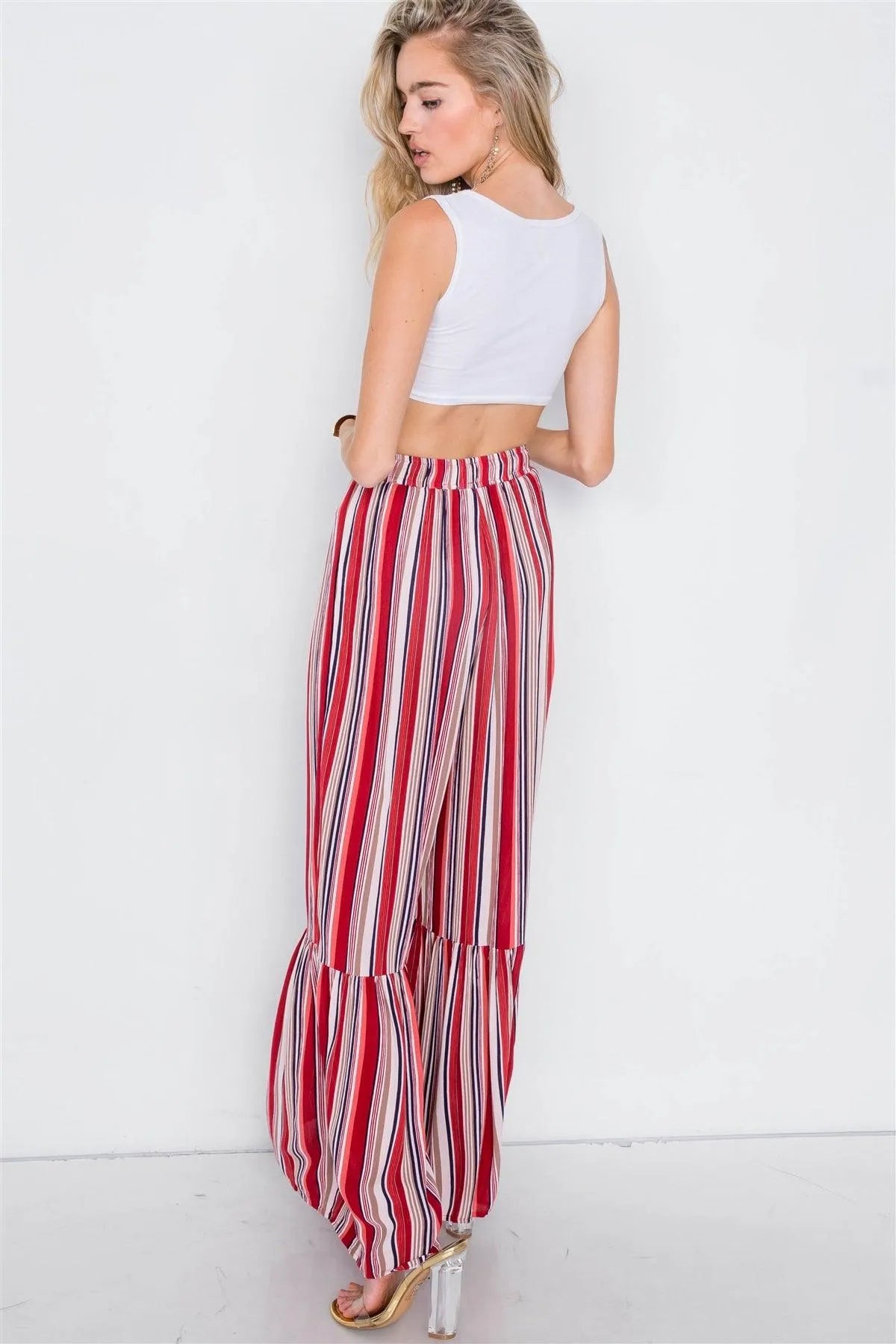 Pomegranate Multi Stipe Flare Ankle Pants /3-2-1