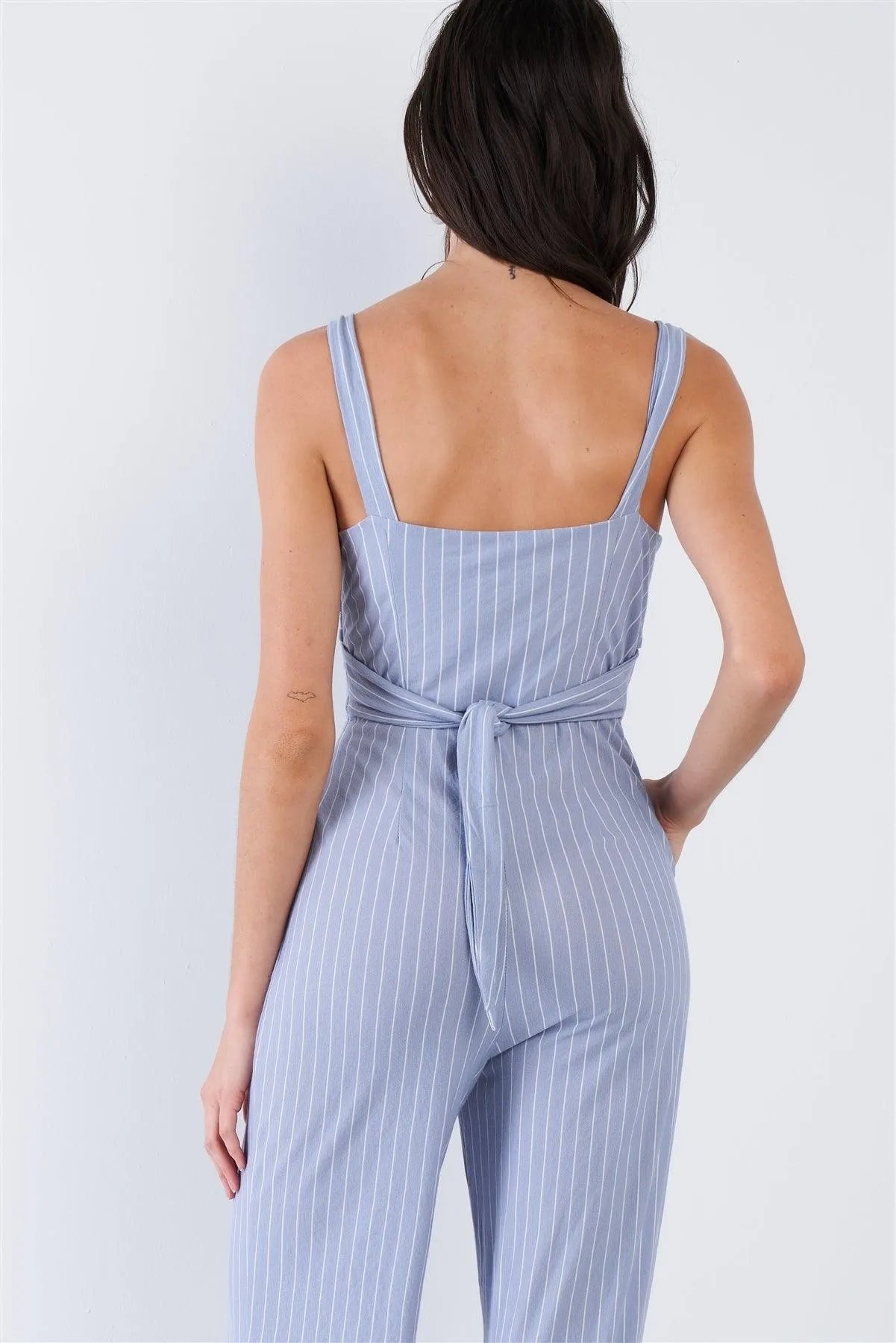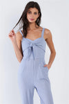 Powder Blue & White Stripe Front and Back Bow Cotton Wide Leg Jumpsuit /3-3