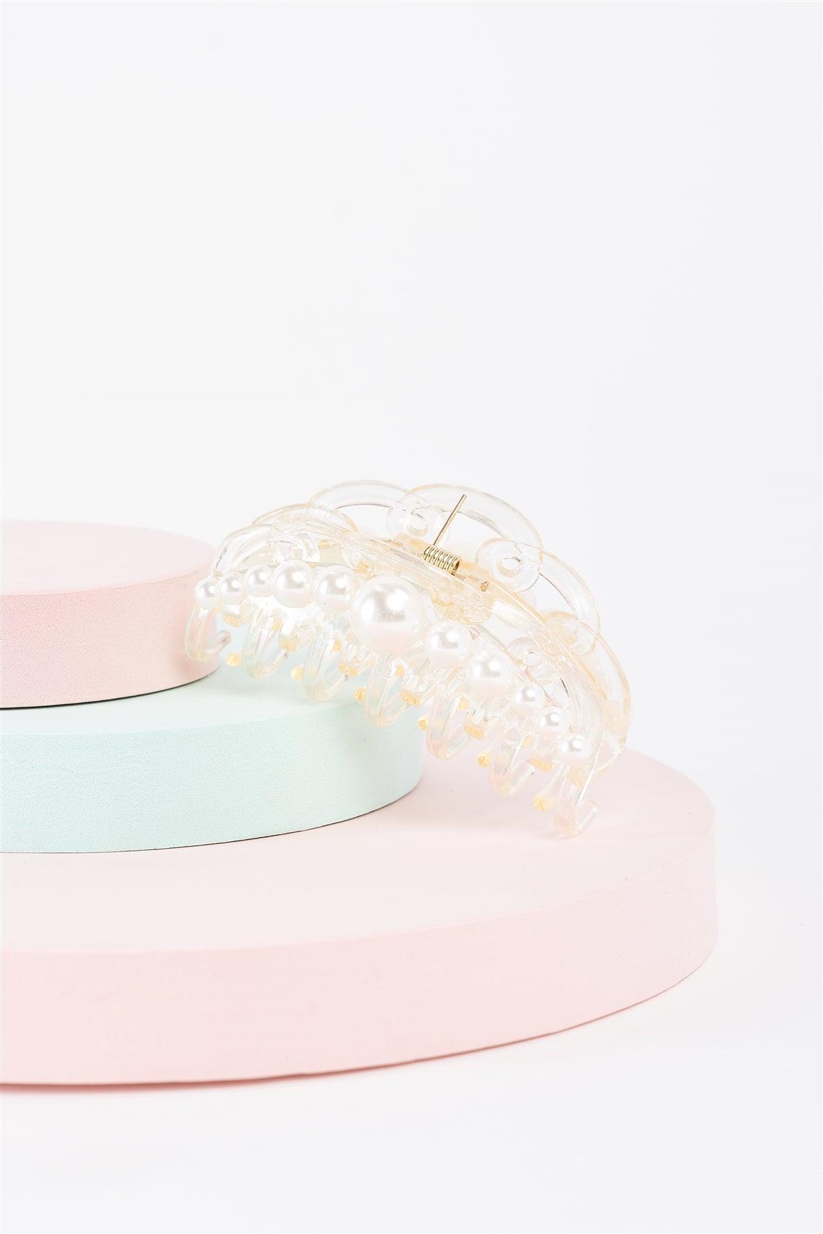 "Princess Hairpin" White & Pearl Large Hair Clip /3 Pieces