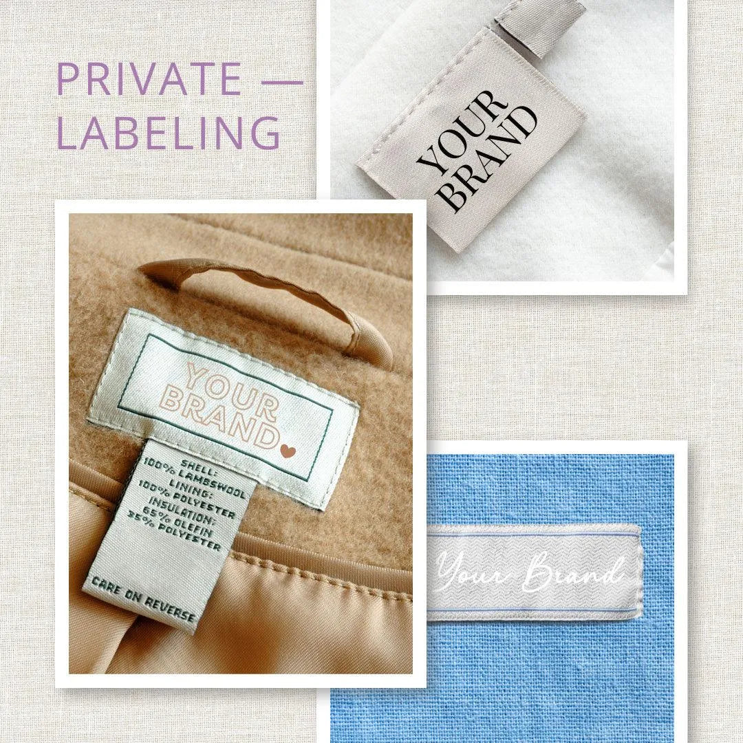 Private labeling is a service where we replace the manufacturer's label with your own brand's label on clothing items. This allows you to sell our high-quality products under your own brand name, giving you the freedom to build and enhance your brand's identity.