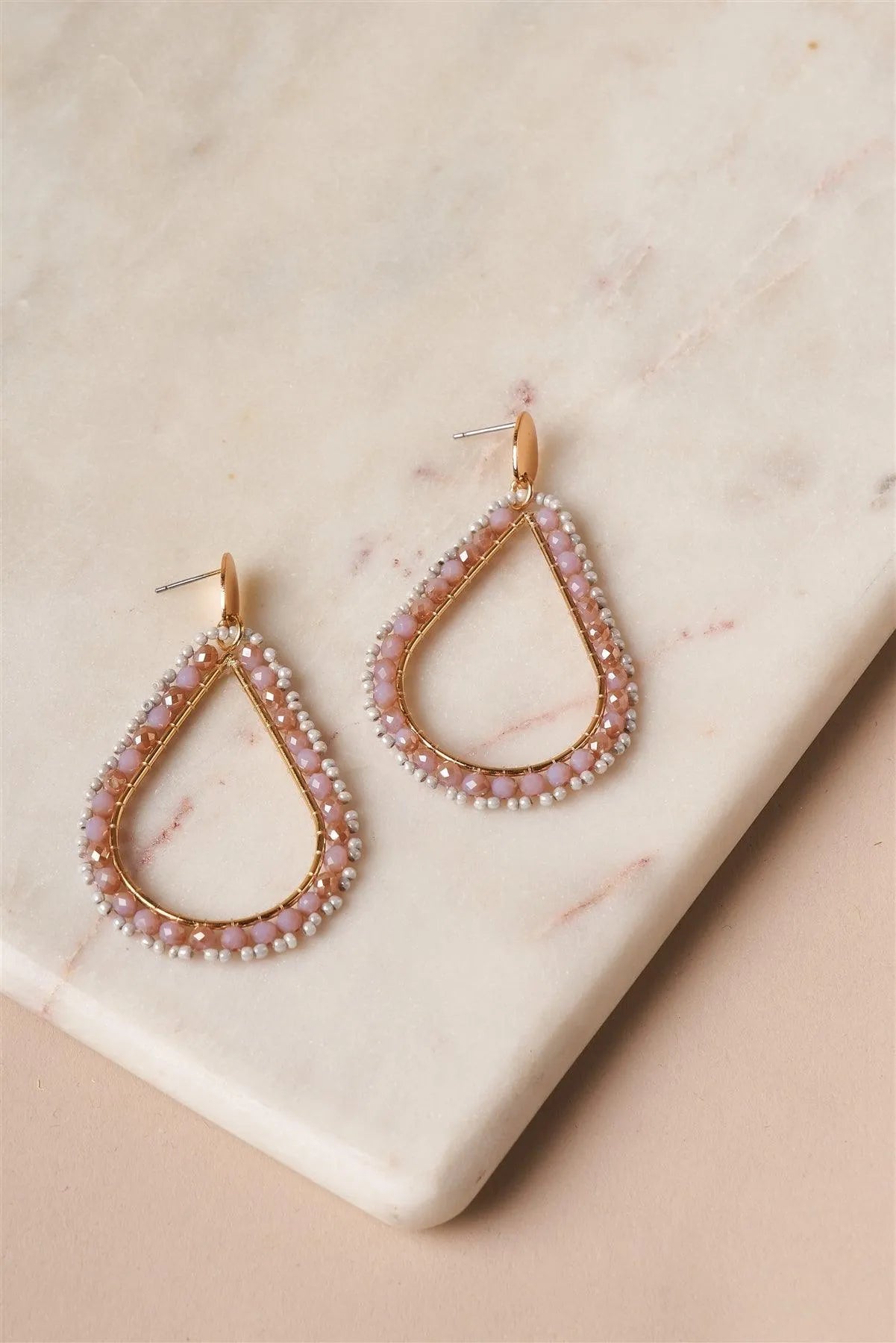 Purple Beaded Hoop Teardrop Earrings /1 Pair