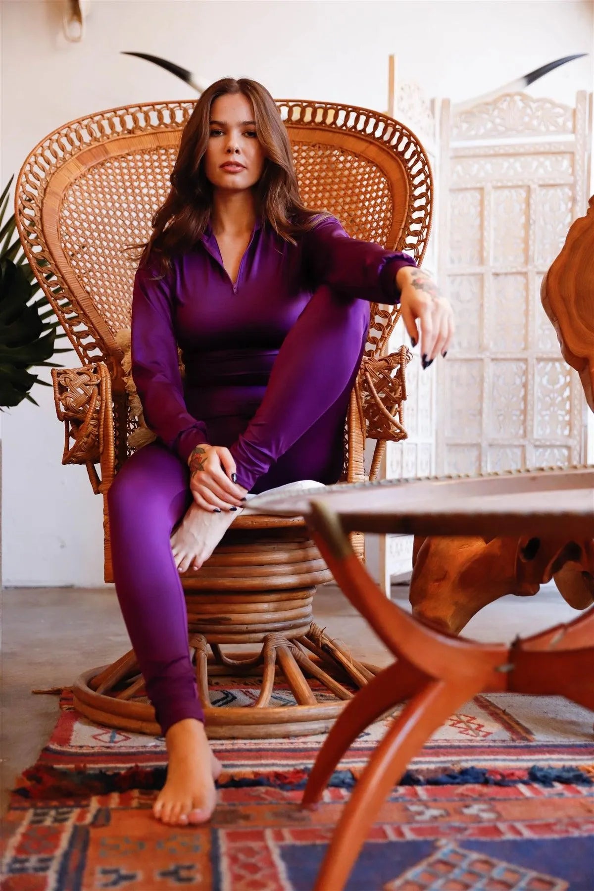 Purple Shine Half Zip Front Mock Neck Cropped Top & High Waist Leggings Set /2-2-2
