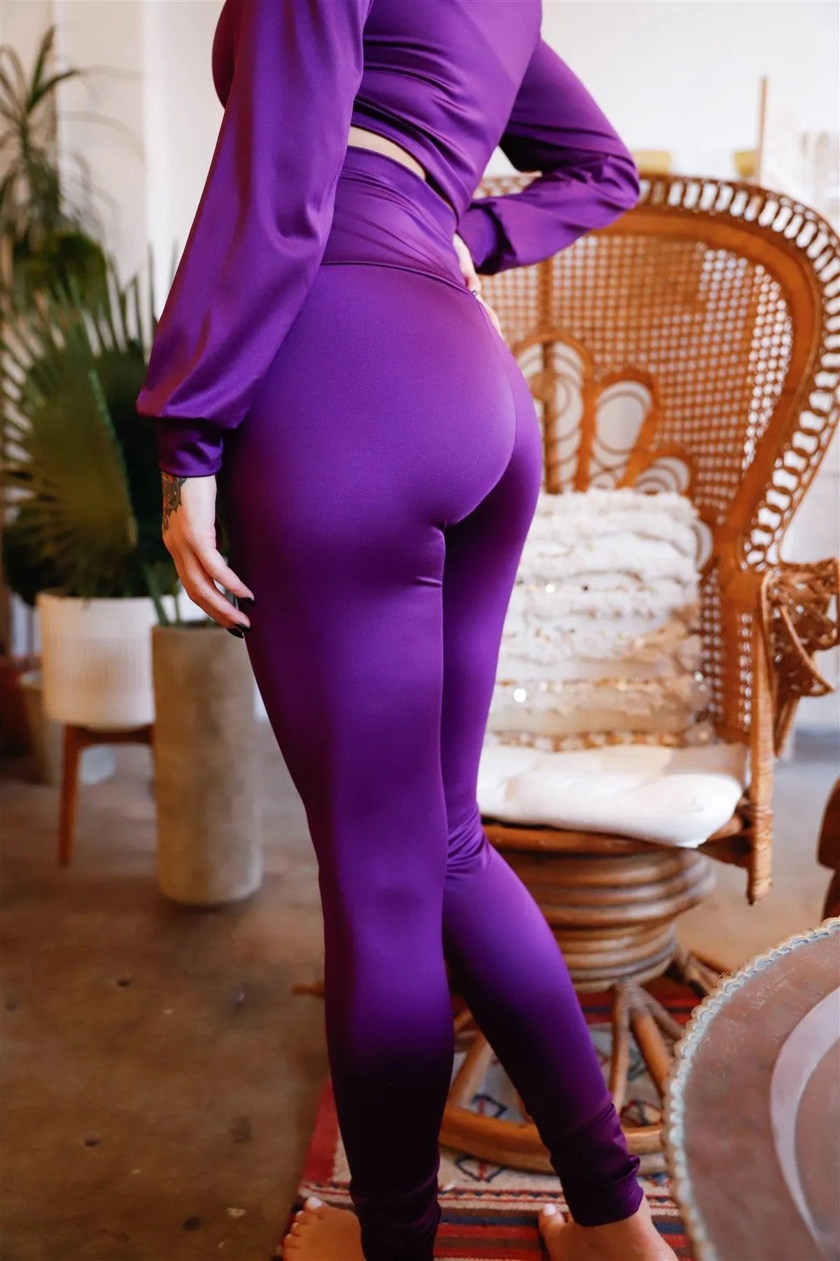🖤 Item features: Purple, solid color, shine material, half zip up front mock neckline, cropped length, cuffed long sleeves, dropped shoulders, cuffed hem, high waist fitted leggings, full length, stretchy, slim fit, non-sheer, activewear, casual, trendy, must have, street style