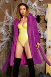 Purple Soft Faux Fur Open Front Detachable Belt Long Sleeve Coat /2-2-2