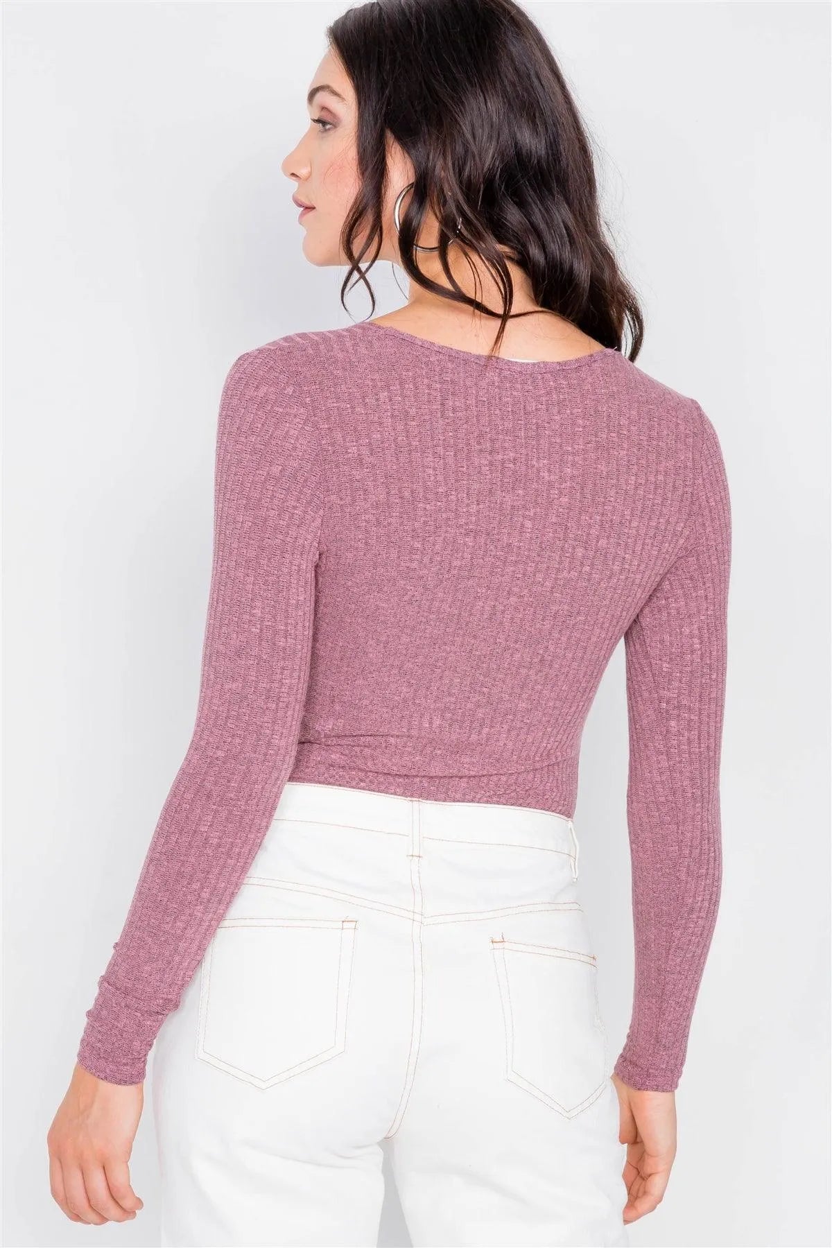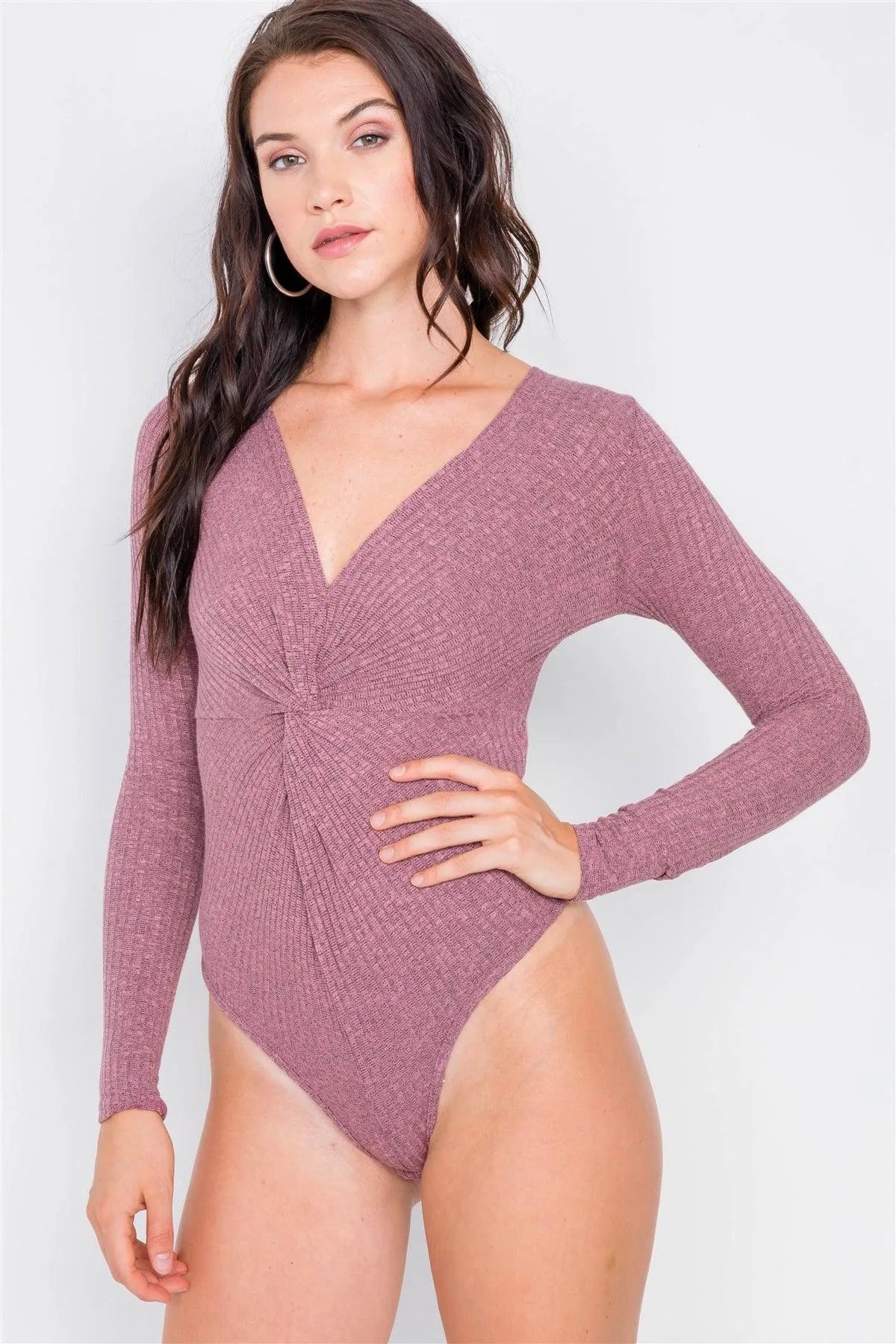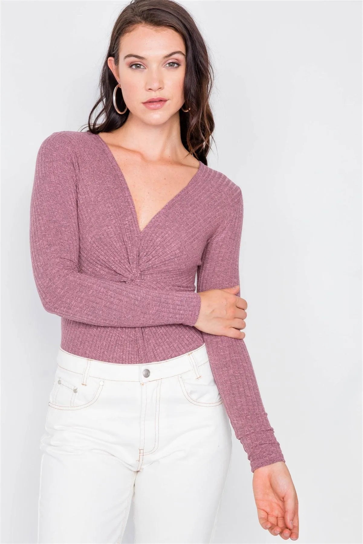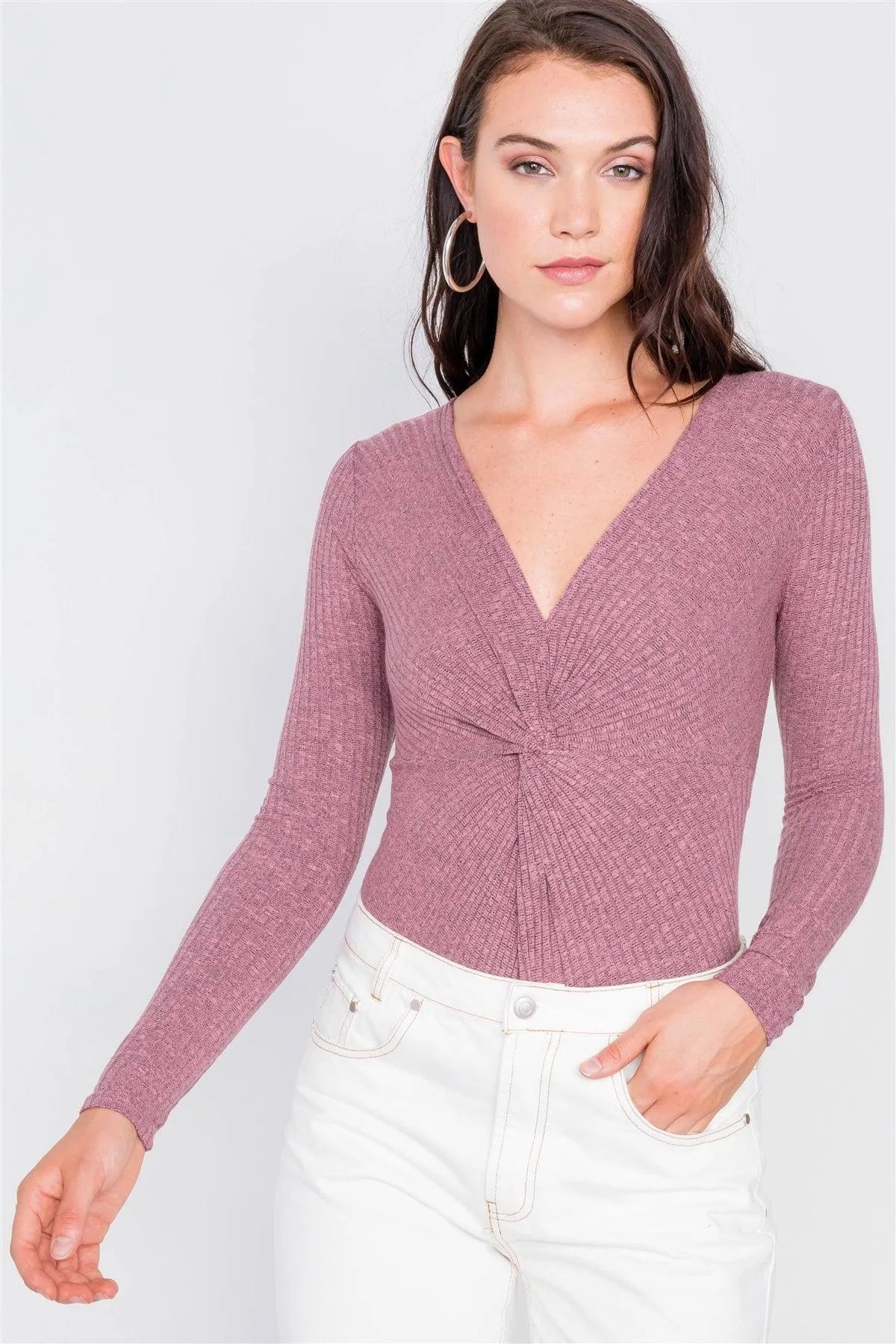 Purple Ribbed Front Knot Knit Bodysuit /2-2-2