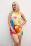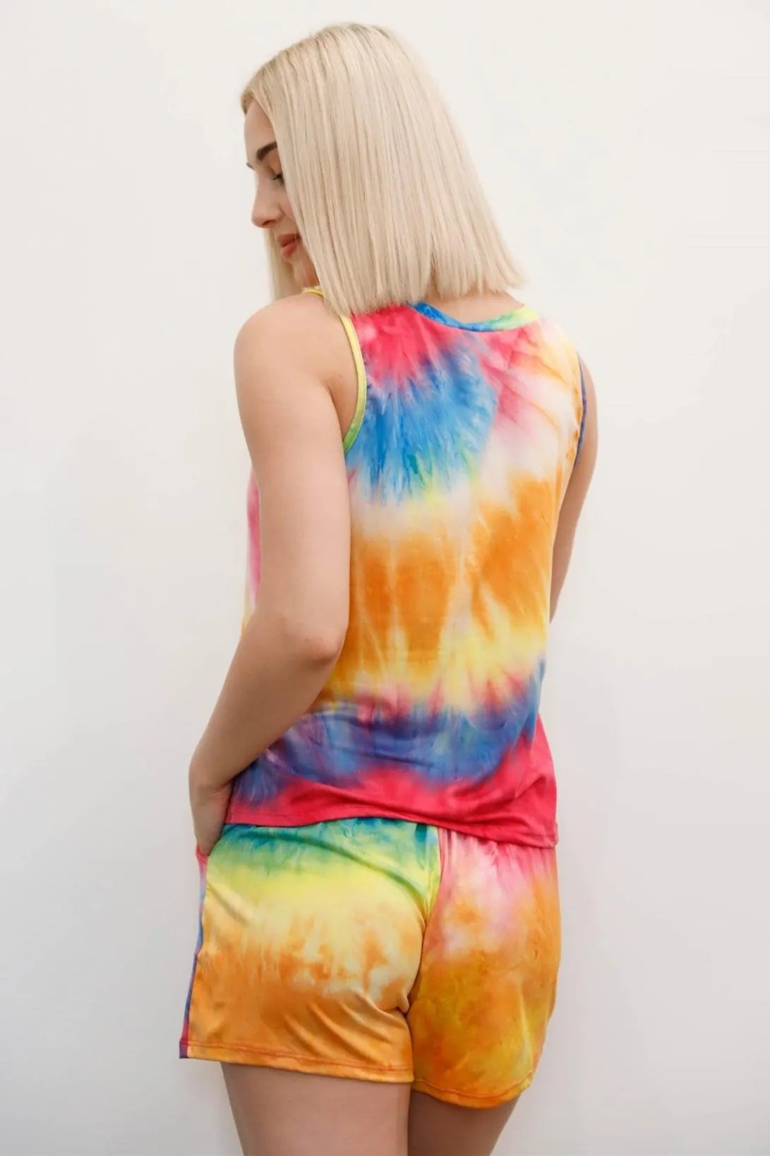 Rainbow Tie-Dye Sleeveless Tank Top & Shorts Set