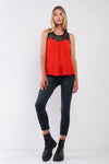 Red & Black Sleeveless Tennis Net Neckline Trim Relaxed Babydoll Top /1-3-2