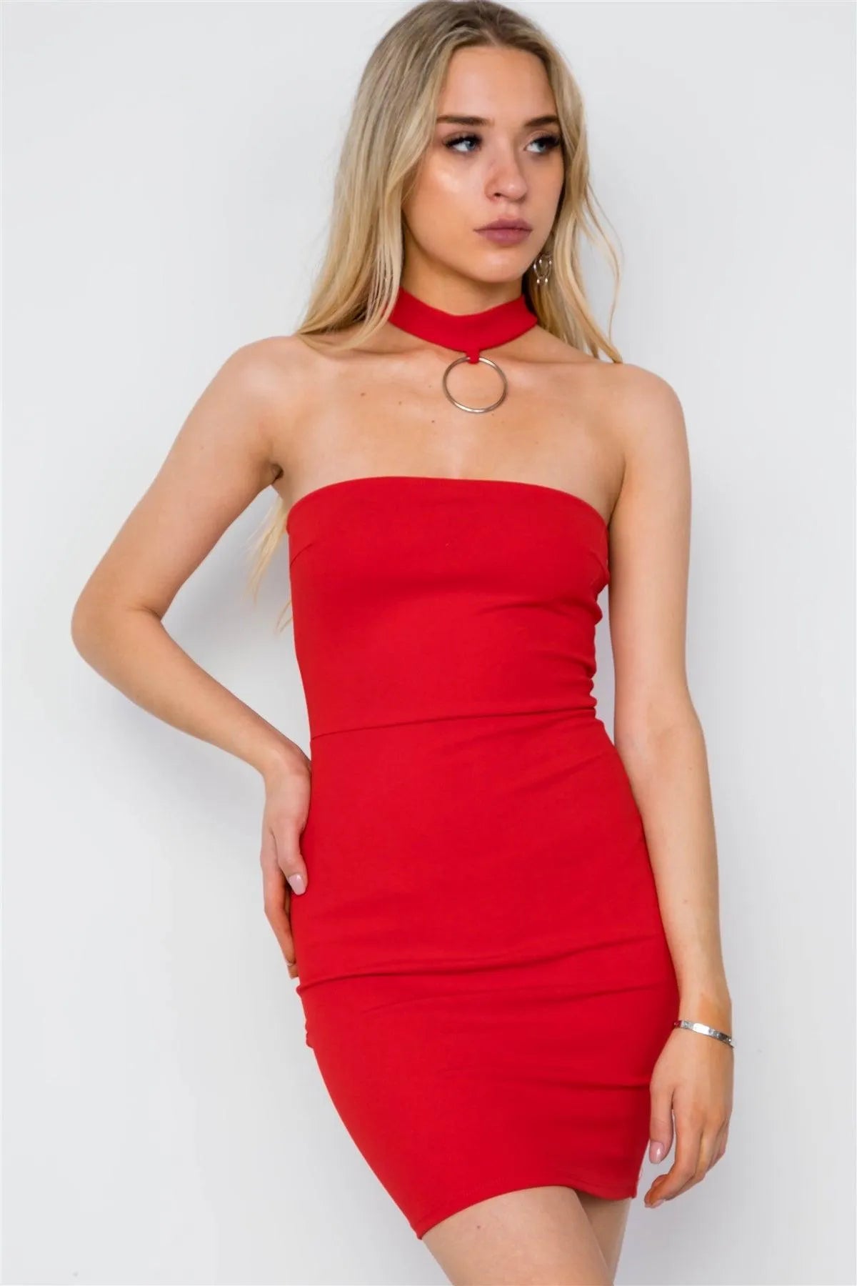 Red Bodycon Chocker Neck Mini Dress / 3-2-1