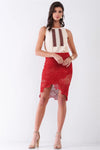 Red Crochet Embroidered High Waist Asymmetrical Midi Skirt With Golden Lining /3-2-1