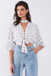 Sheer Long Sleeve Textured Ruched Front Trendy Cropped TopVendor:HYFVE