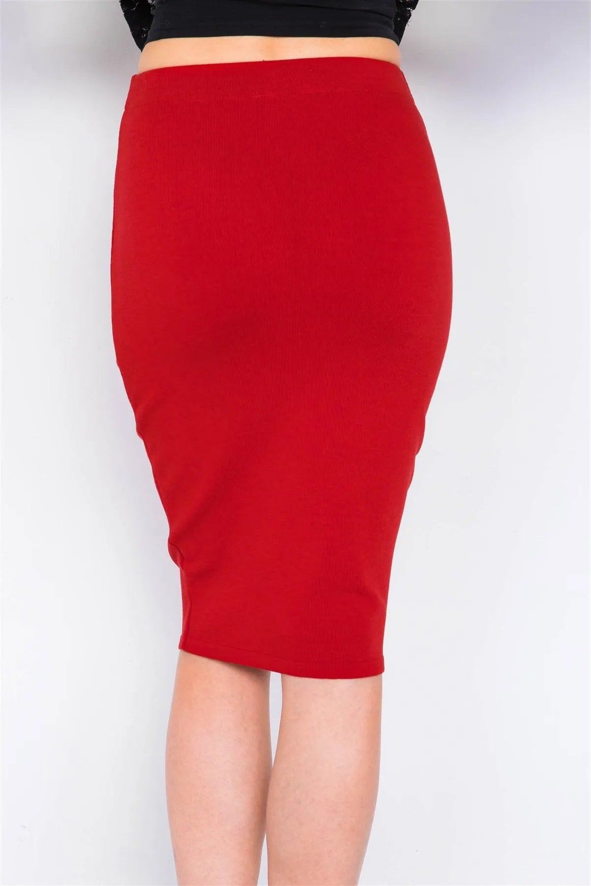 Red High-Waist A-Line Pencil Bodycon Basic Midi Skirt /2-2-2
