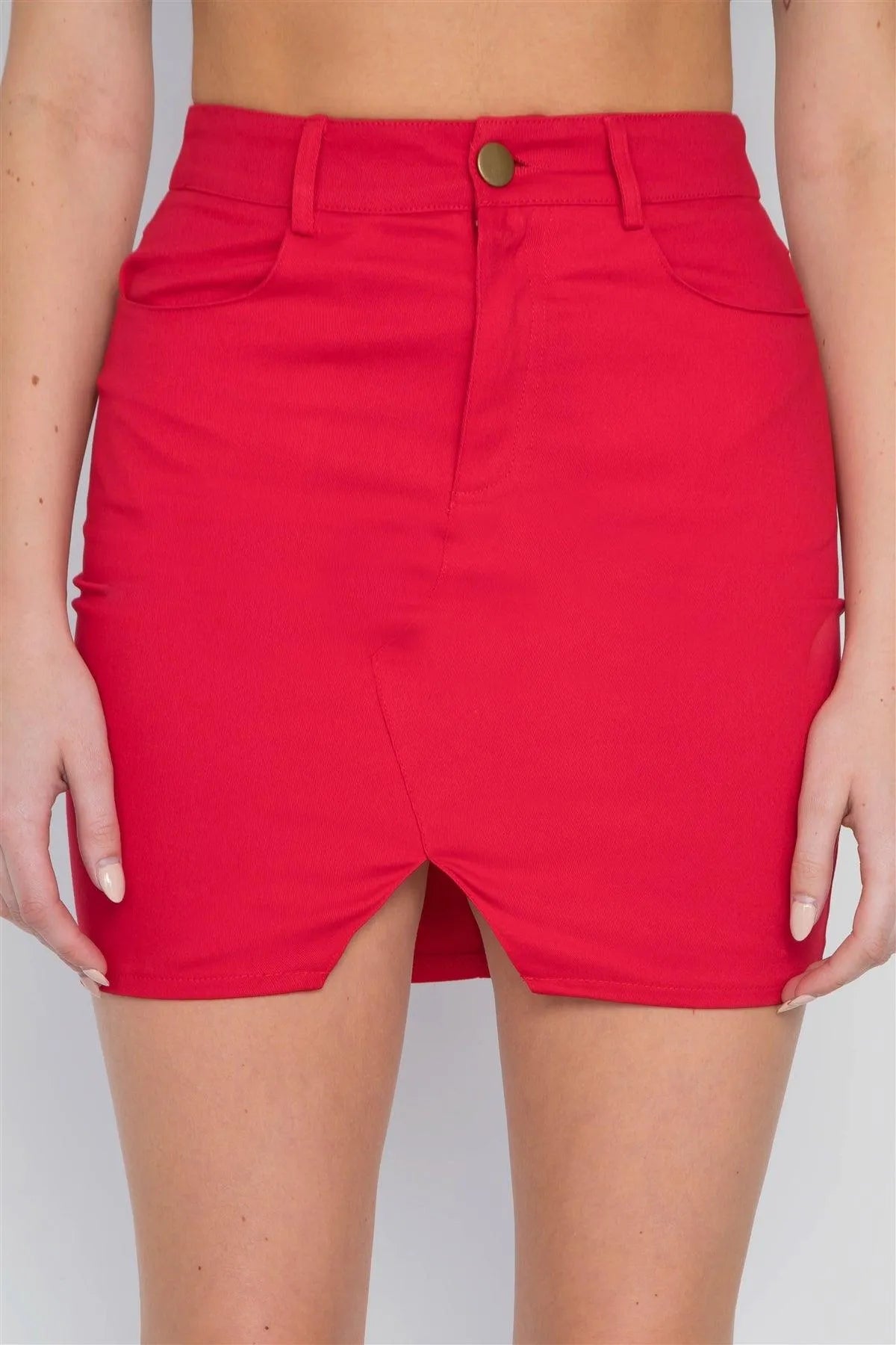 Red High-Waist Solid Denim Mini Skirt /3-2-1