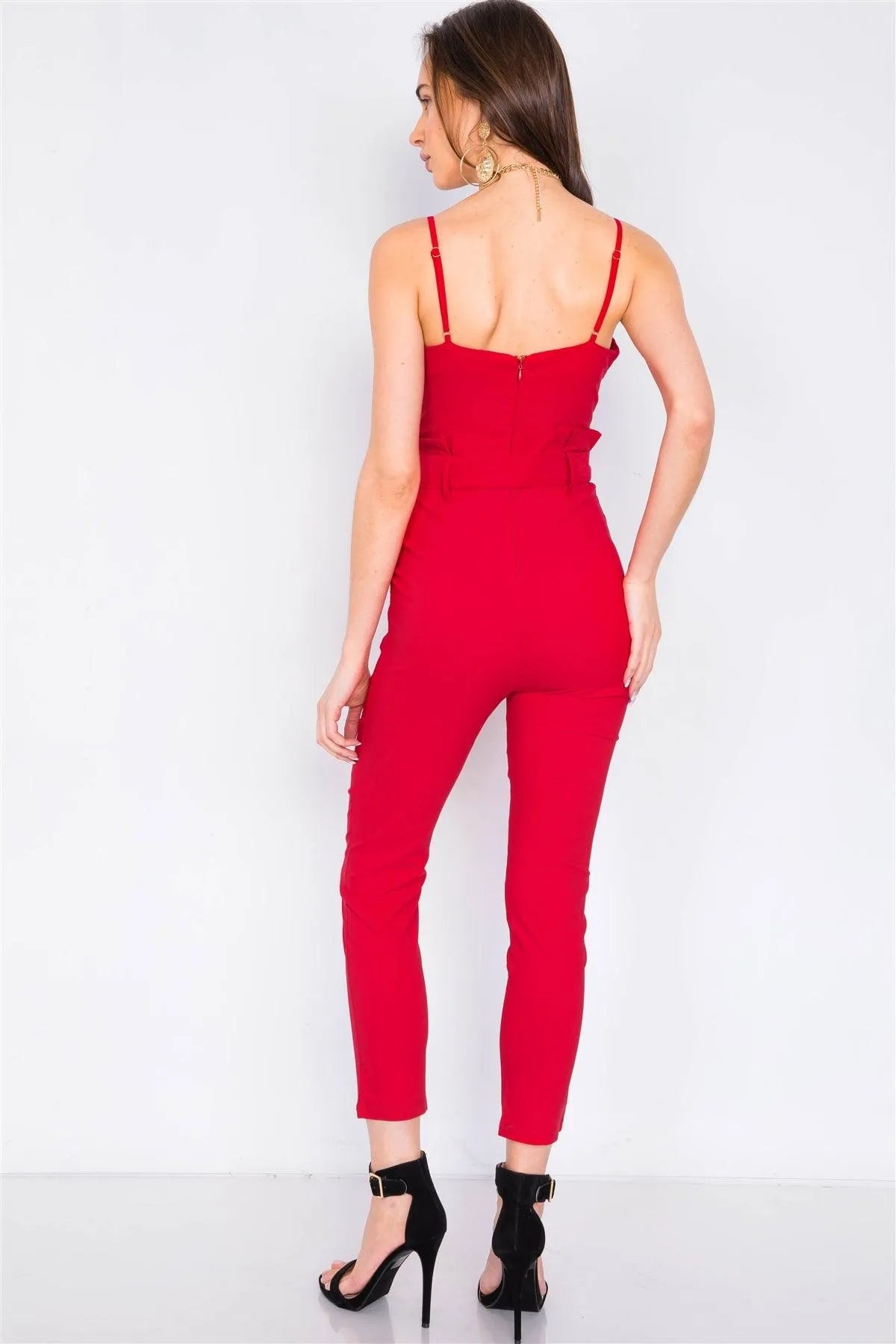Red Mock High-Waist V-Neck Cami Casual Chic Jumpsuit /3-2-1