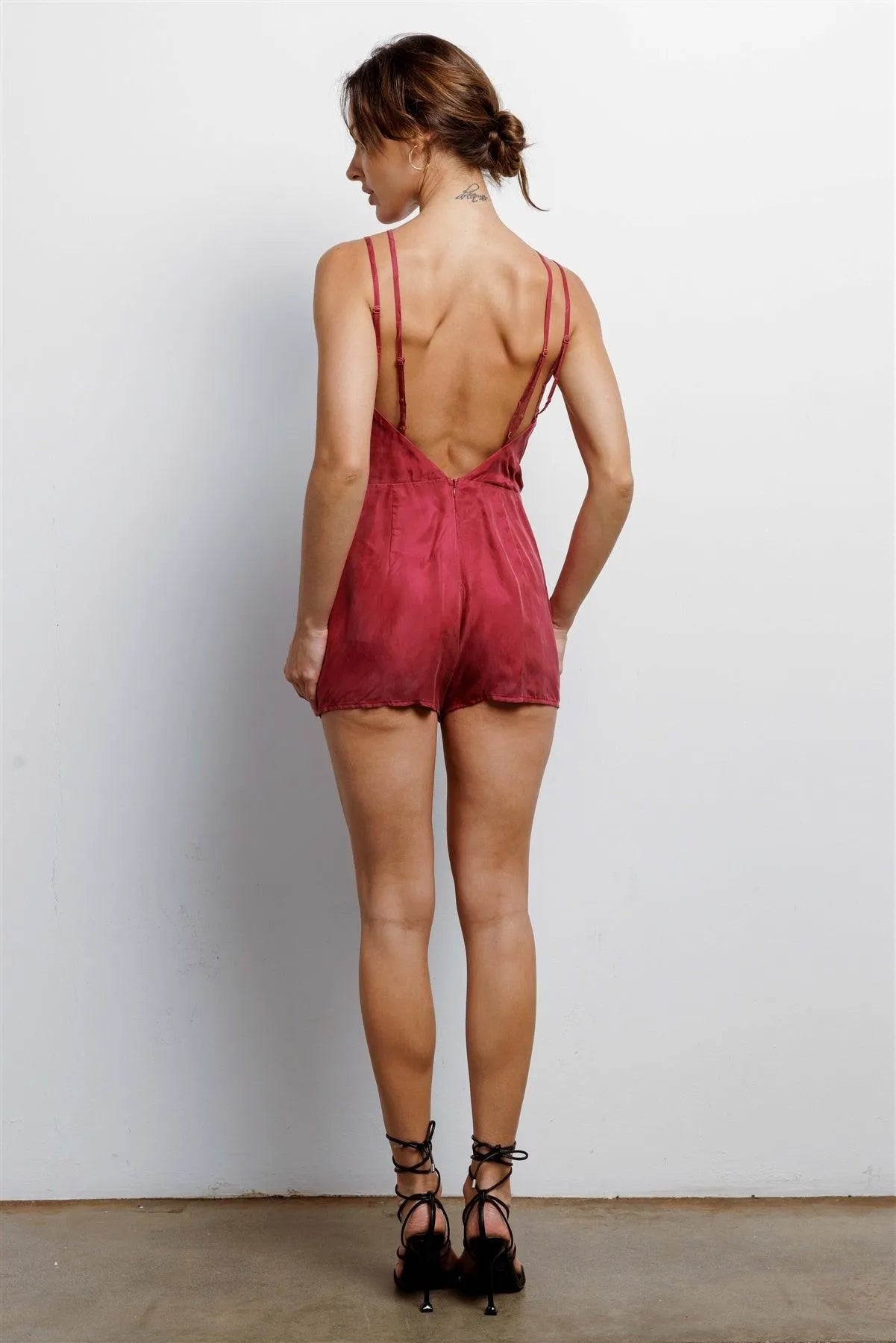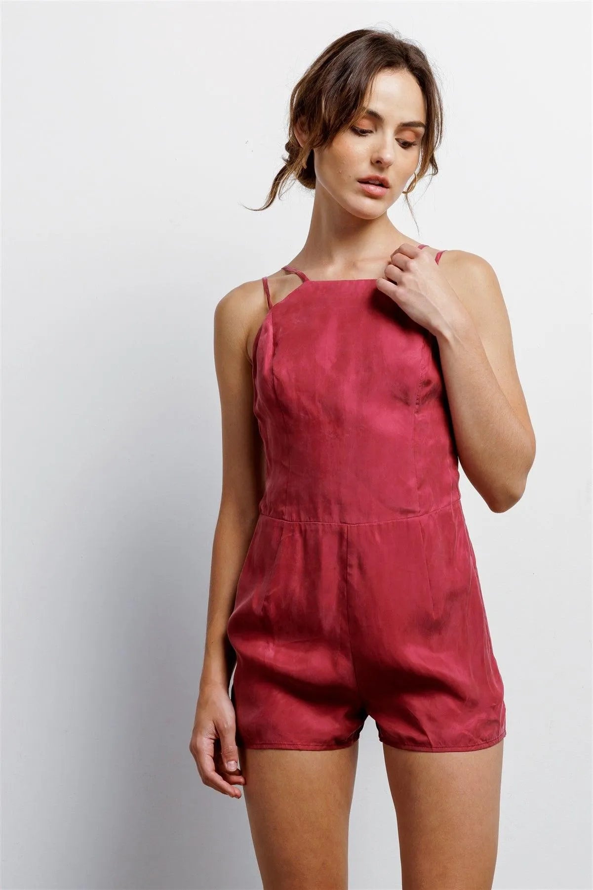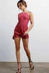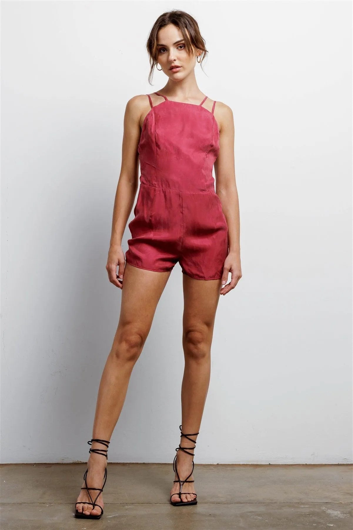 Red Sangria Sleeveless Bandeau Neck Open Back Detail Romper /1-2-2-1