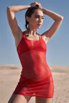 🖤Item features: Red, solid, sheer, mesh, sleeveless, fitted, non-adjustable shoulder straps, round neckline, stretchy, see-through, unlined, mini length, hot&sexy, beachwear, festival look, summer collection