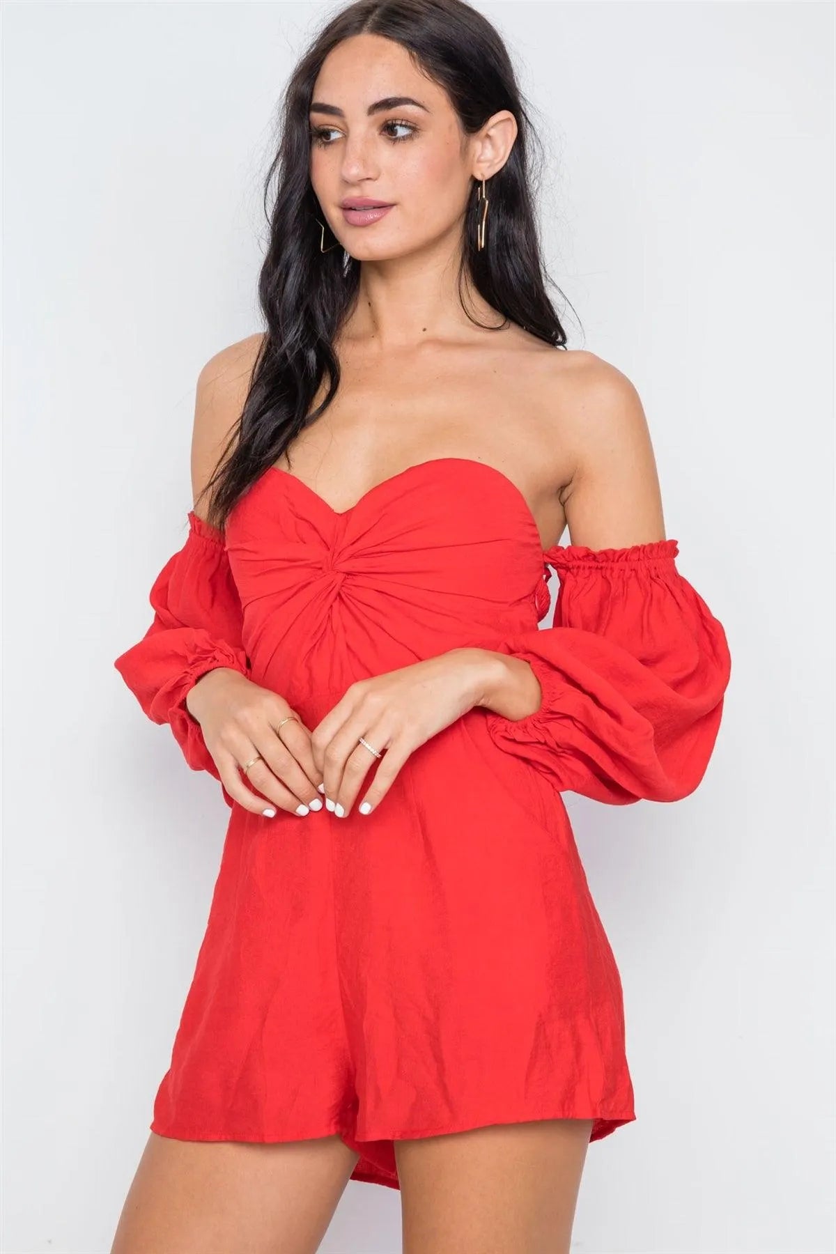 Red Sweetheart Neckline Puff Sleeves Romper /2-2-1